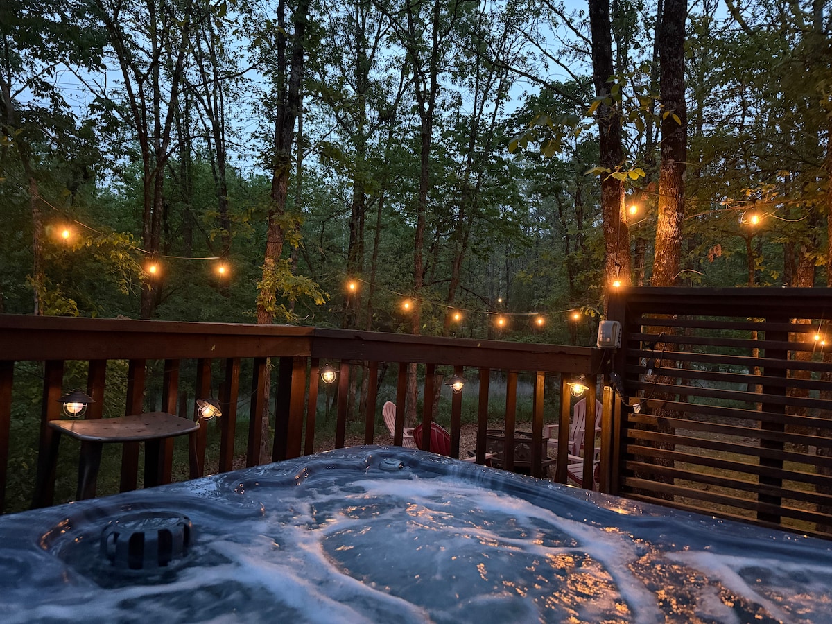 Pobjegnite u 282 Timbuktu Cabin, privatno luksuzno utočište za parove. Spavaća soba ima veliki bračni krevet, meku posteljinu koja stvara savršenu atmosferu za miran noćni odmor. Uživajte u kupatilu u stilu spa centra sa kadom i tušem sa efektom kiše. U potpuno opremljenoj kuhinji naći ćete sve što vam treba da skuvate romantičnu večeru za dvoje. Udobno se smjestite pored unutrašnjeg kamina, opustite se u hidromasažnoj kadi ili pijuckajte kafu na terasi. Savršeno za medeni mjesec, godišnjice i romantične izlete.
