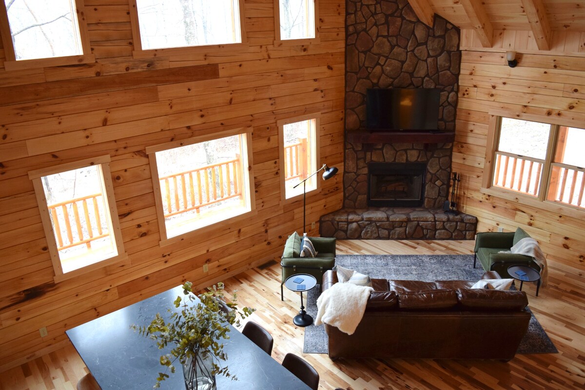 Nest at Dunlap Ridge je luksuzna brvnara za parove smještena u Hocking Hillsu. Pripremite se da se zaljubite u panoramske prozore od poda do plafona, toplim, organskim modernim dekorom i privatnošću! Bilo da odlučite da provedete vrijeme na terasi pijući kafu, kupajući se u hidromasažnoj kadi ili uživajući u S'mores pored skrovite ognjišta, sigurno ćete biti impresionirani! Gnijezdo ima potpuno opremljenu kuhinju, moderno kupatilo, bračni krevet, unutrašnji kamin i zadivljujući enterijer.