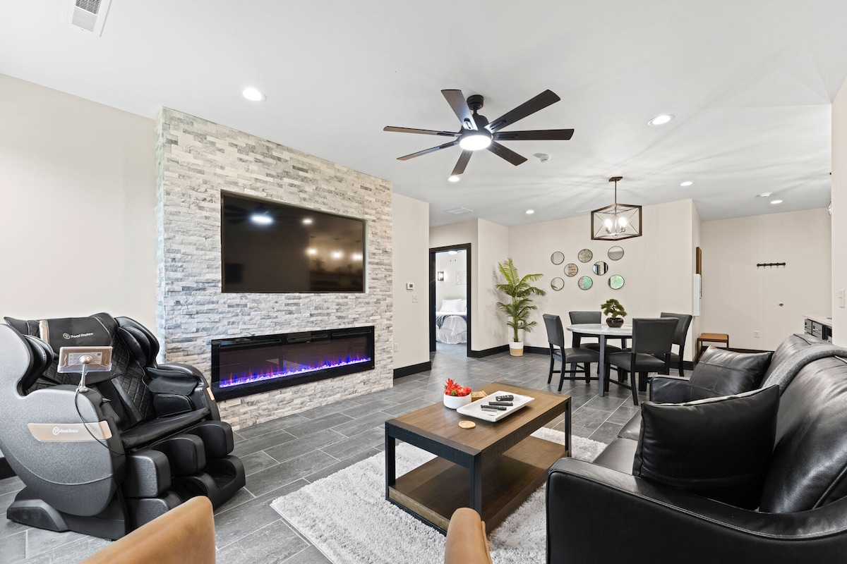 Smješteni na 8 privatnih hektara, oživite svoju romantiku u ovom luksuzu, odrasli samo odlaze. Ovaj jedinstveni dom nudi vrhunske prilagođene sadržaje kao što su: plutajući dnevni krevet na otvorenom, viseća ležaljka, hidromasažna kada, projekcioni ekran, prostrana višenamjenska tuš-kada, lokalne umetničke slike, sto za masažu, više ognjišta i modernog ukrasa. Jedan nivo bez stepenica. Uživajte u boravku u zatvorenom/na otvorenom sa vratima koja se otvaraju do trijema kroz najsavremeniju najsavremene staklene ploče širine 12 stopa.