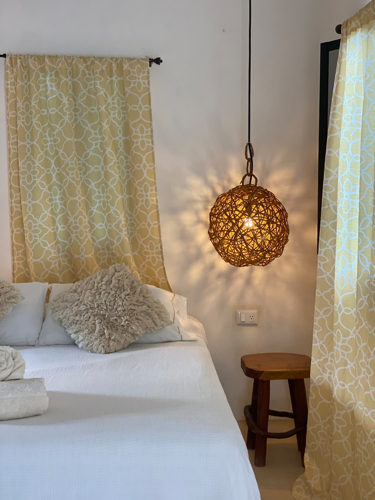 El apartamento Terra je jedinstven i privatan prostor, stvoren s ljubavlju i detaljima, među tropskim drvećem, ističući svoju modernu završnu obradu u bijelom poliranom cementu, visokim plafonima, privatnom bazenu, satelitskom internetu. Bračni krevet (širine 180-179 cm), klima-uređaj, televizor i kompletna kuhinja. Uživajte u ovoj izuzetnoj lokaciji, oazi usred prelijepih ulica Holboksa. A najbolje, na dva minuta hoda od mog omiljenog dijela plaže Holboks, savršeno mjesto za posmatranje najboljeg zalaska sunca.