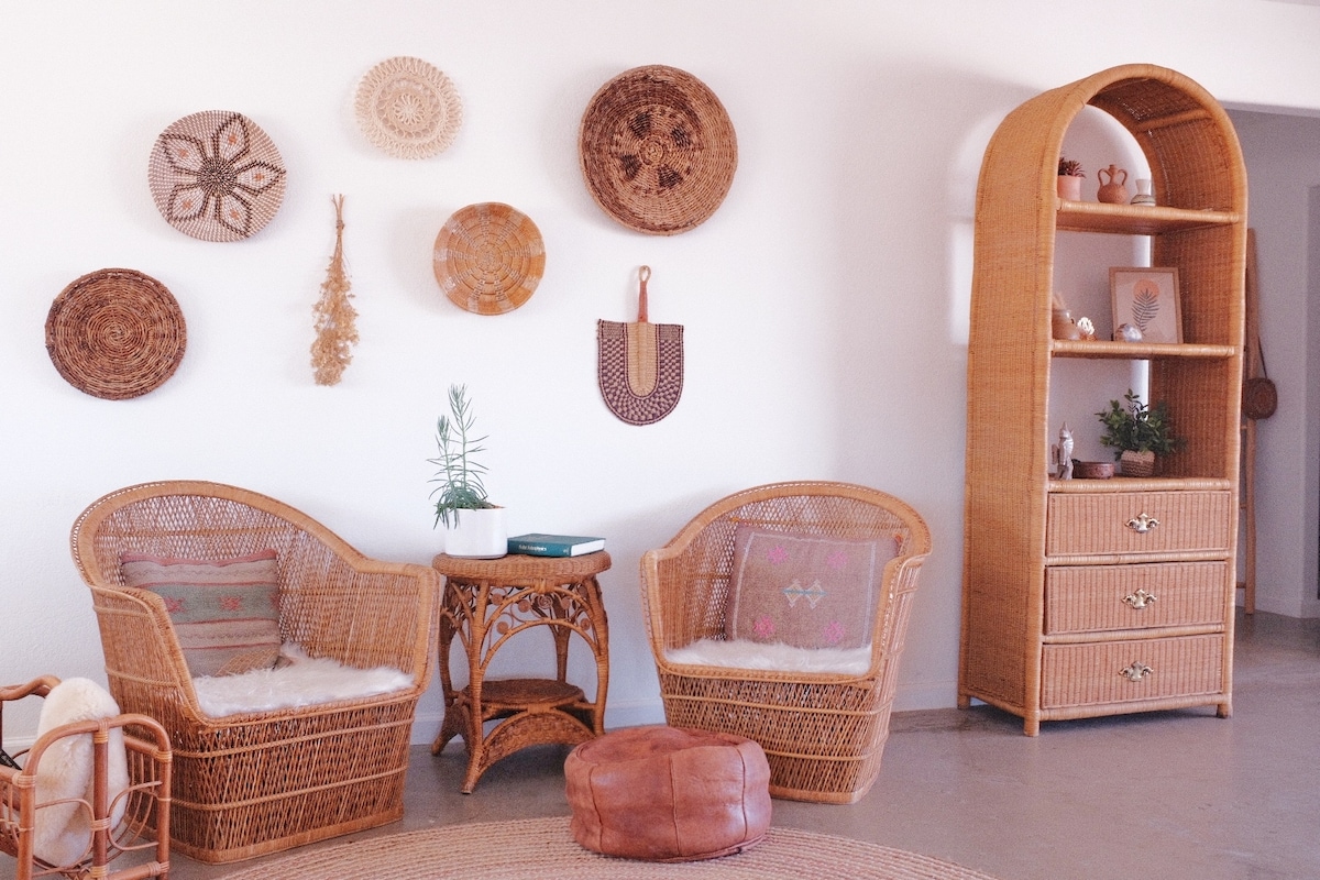 Pronađite obnovu u čaroliji Moonstone Adobea. Ovaj topli i intimni dom ima 2 spavaće sobe, 1 kupatilo na 2,5 hektara. Uređena je i dizajnirana sa ručno ubranim starinskim i jedinstvenim komadima. Preuredila ga je četvoročlana porodica koja jedva čeka da podijeli svoj prostor sa vama. * UDALJENI SMO 22-28 MINUTA VOŽNJE OD NAJBLIŽEG ULAZA U NACIONALNI PARK JOSHUA TREE @Moonstone_Adobe