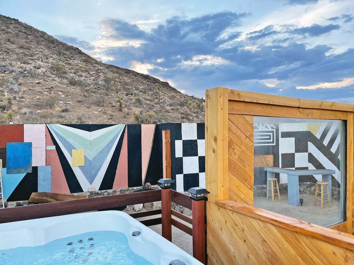 Uživajte u „opuštanju” u @Mojave_Lofi, privatnom, mirnom, pustinjskom odmaralištu udaljenom samo 25 minuta od nacionalnog parka Džošua Tri. – Hidromasažna kada XL i nadzemni bazen (sezonski) - Pseći prijatelji su dobrodošli, a mi obezbjeđujemo zdjele i kese za otpad - zemljište od 2,5 hektara sa potpuno ograđenim dvorištem - Kal-King kreveti - Roštilj i ognjište - Potpuno opremljena kuhinja - Igraonica sa bazenom i ping pongom - Kolekcija zapisa - Al Fresco Dining - Teleskop za posmatranje zvijezda - Mašina za pranje i sušenje veša - La Kopine, najbolji restoran u pustinji, udaljen je samo nekoliko koraka!
