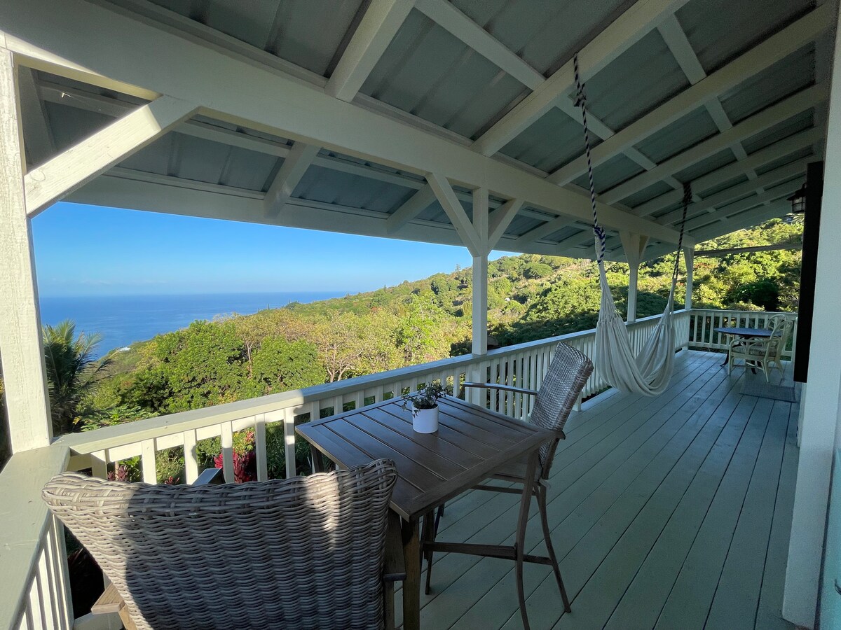 Nedavno renoviran stan sa 1 spavaćom sobom i prelepim pogledom na okean na privatnom Lanaiju. Nalazi se u južnoj Koni na 2 bujna hektara, uključujući mnoštvo tropskih voćaka. Ruralno okruženje, ali 10 minuta do restorana, pijace i kupovine. Kratka vožnja do neverovatnog zaliva Kealakekua i dva koraka savršena za ronjenje, vožnju kajakom i veslanje na dasci. Jednostavan jednodnevni izlet u vulkan Kilauea. Naša prostrana jedinica ima bračni krevet, veliko kupatilo i potpuno opremljenu kuhinju.