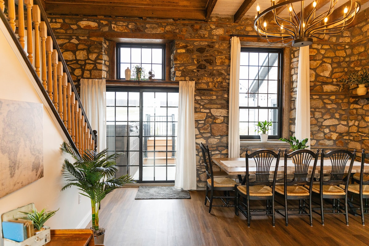 Pobjegnite u ovu luksuznu planinsku kuću s kosim krovom smještenu u Birdsborou u Pensilvaniji, pružajući veličanstvene planinske poglede. Uživajte u toplini udobnog kamina, opustite se u hidromasažnoj kadi i koristite kuhinju na otvorenom za kulinarske avanture. Ova planinska kuća je idealna za opuštanje i podmlađivanje, sa praktičnim pristupom obližnjim stazama za planinarenje, mogućnostima za ribolov i priliku za vožnju kanuom. To je pravo utočište od svakodnevnice.
