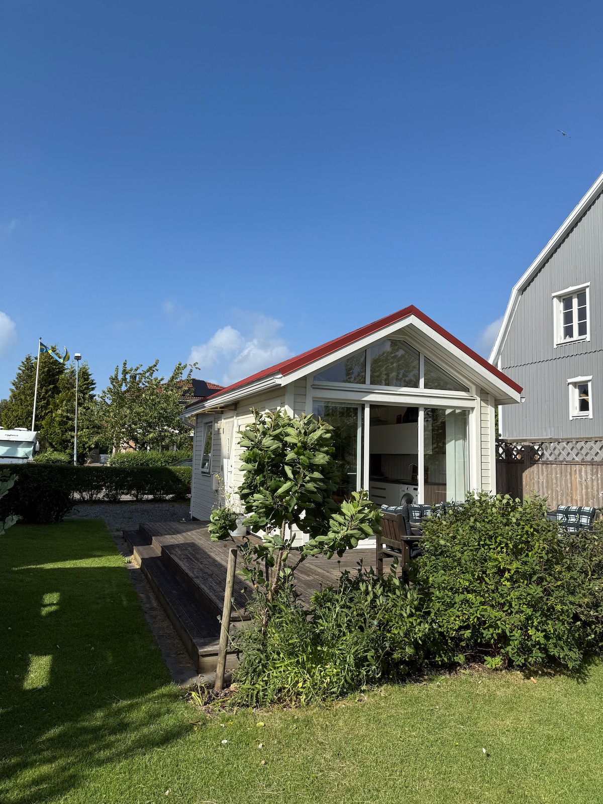Iznajmljujemo našu vikendicu koja je pravi biser tokom cele godine. Lokacija je savršena, na 5-10 minuta hoda do slanog mora i lepih vidikovaca. Automobilom se za 20 minuta stiže do Marstranda i za 35 minuta do Geteborga, a preporučujemo da imate automobil. Kuća je starija i jednostavna, ali je delimično renovirana tokom zime 2025. godine. Nalazi se na prelepom prirodnom zemljištu i ima vanjsku sobu sa terasom koja ima pogled na more. Kuća je pogodna za porodice sa decom, prijatelje i parove. Maksimalno 4 odrasle osobe, ali više ako su u pitanju deca.