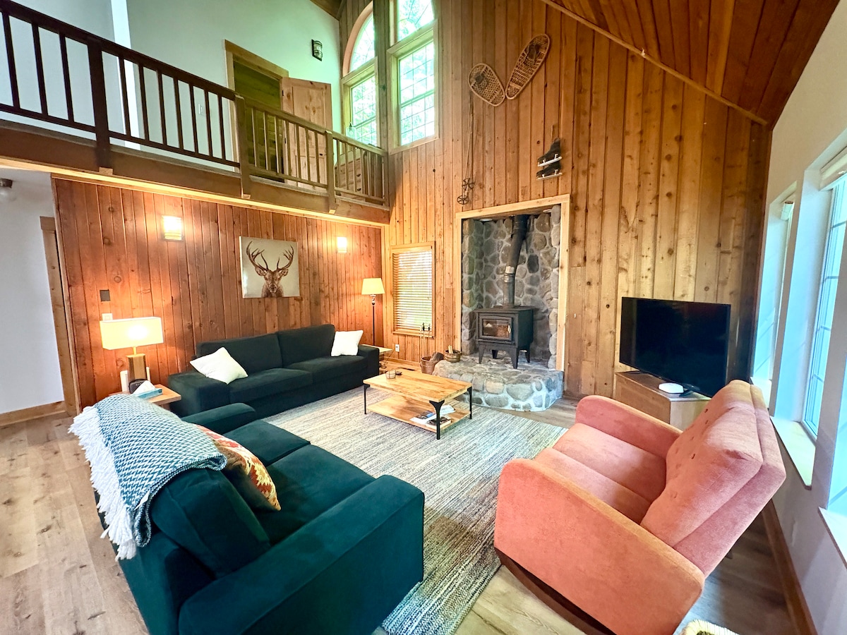 Naša predivna gostinjska kuća je udobna garsonjera sa bračnim krevetom, kuhinjom, sofom i trpezarijskim stolom u jednoj velikoj sobi. Tu je i kupatilo sa tušem. Ovo je stan na drugom spratu iznad zasebne garaže, živimo u susednoj glavnoj kući. Objekat je veoma izolovan od puta, bez drugih kuća u blizini i graniči sa Nacionalnom šumom. Uživajte u prolećnom jezeru u prednjem dvorištu, pešačenju duž reke Sendi ili 15 minuta vožnje do skijališta.