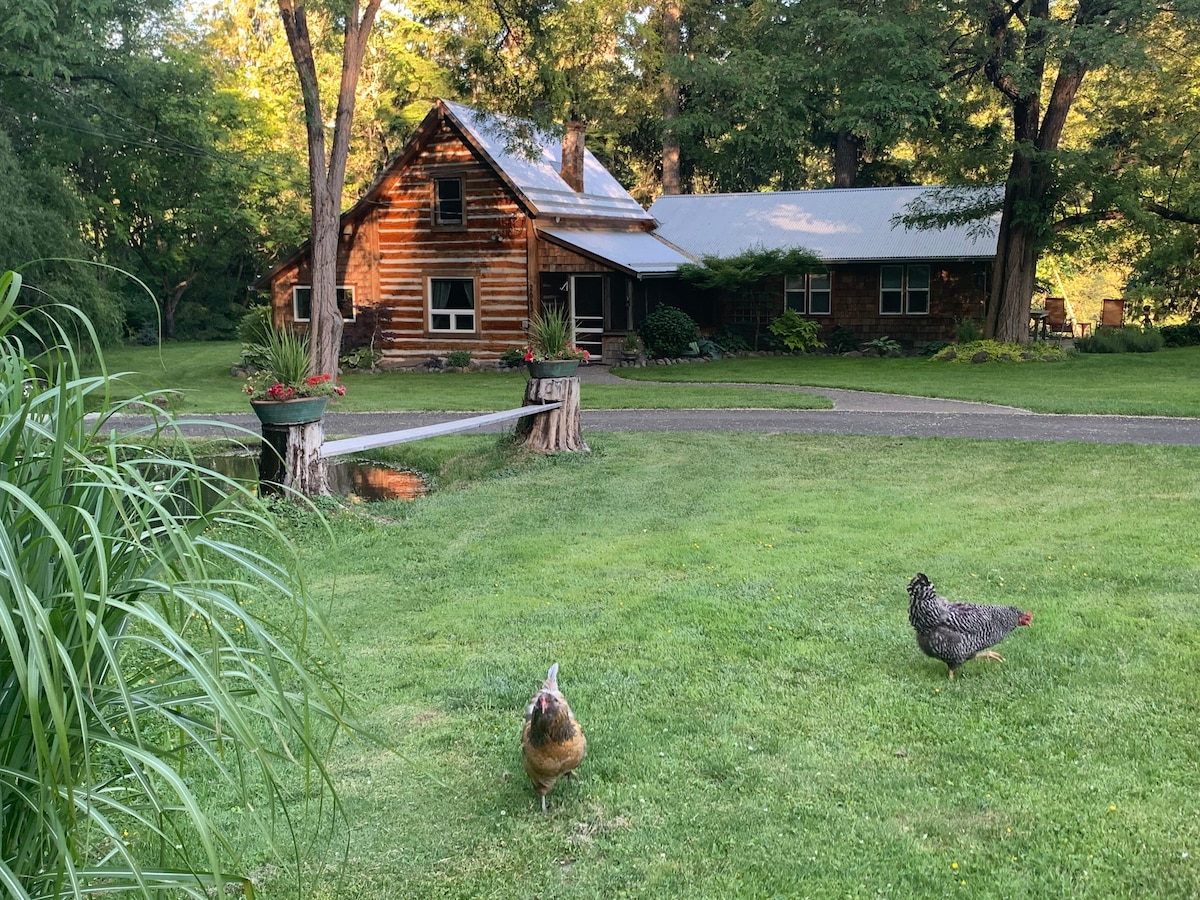 Blackbird Cottage is located on 9 wooded acres. You'll have the entire second floor which includes a separate entrance, kitchen & dining area, 3 bedrooms, 3 bathrooms, washer/dryer plus a deck with picnic table and grill. There are 3 queen beds and a twin with sleeping for 7. Explore the garden with goldfish & koi ponds, 1100' of creek, 2 waterfalls, & a picnic area or take a short hike to an overlook of the Columbia River Owner lives downstairs. No animals (allergies).