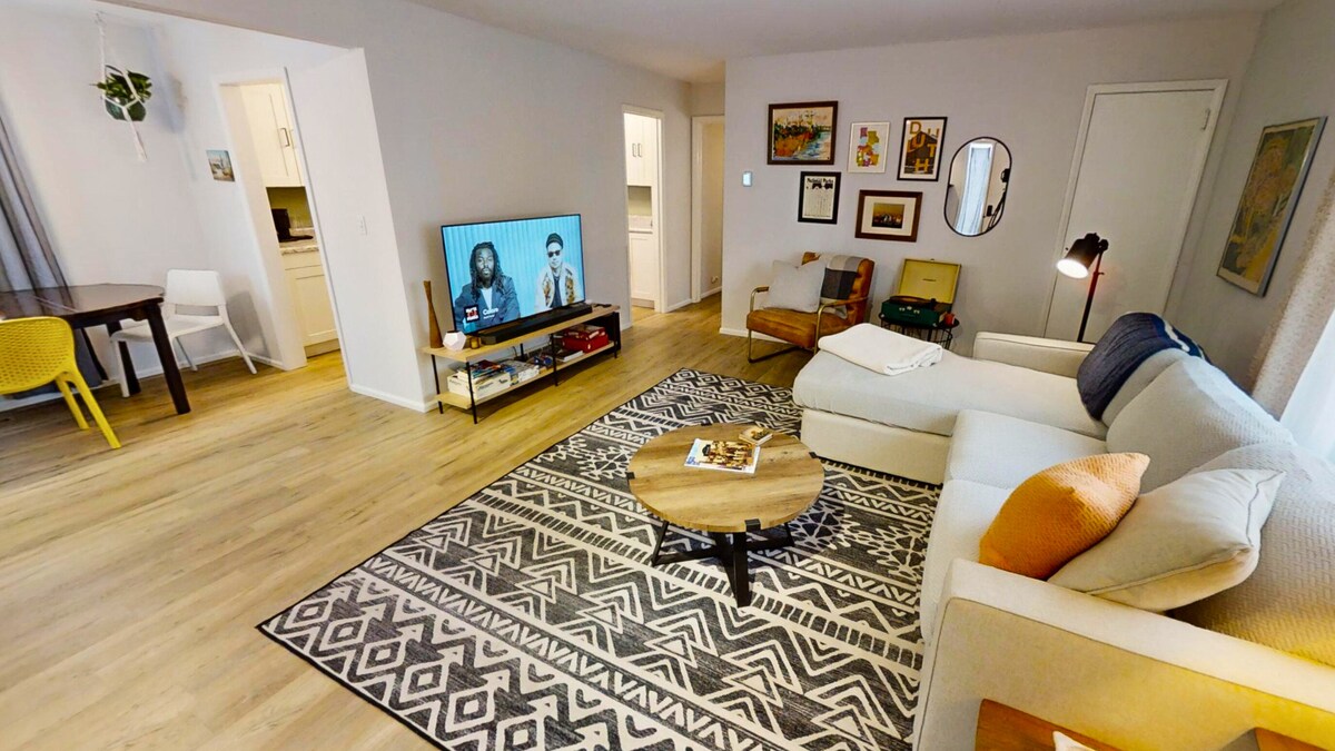 Sunčani dvosobni apartman u Minapolisu sa 1 kupatilom, privatnim ulazom, kompletnom kuhinjom i brzim Wi-Fi mrežom, savršen za parove, male porodice i rad na daljinu. Tih, besprijekoran prostor na višem spratu s podovima od tvrdog drveta, biljkama i toplim detaljima. Porodični kvart sa besplatnim parkingom na ulici, 11 minuta do centra Mineapolisa, 13 minuta do aerodroma MSP i 15 minuta do tržnog centra Mall of America. 16 minuta hoda do tramvaja. Praktična lokacija u blizini restorana, kafića, parkova i jezera!