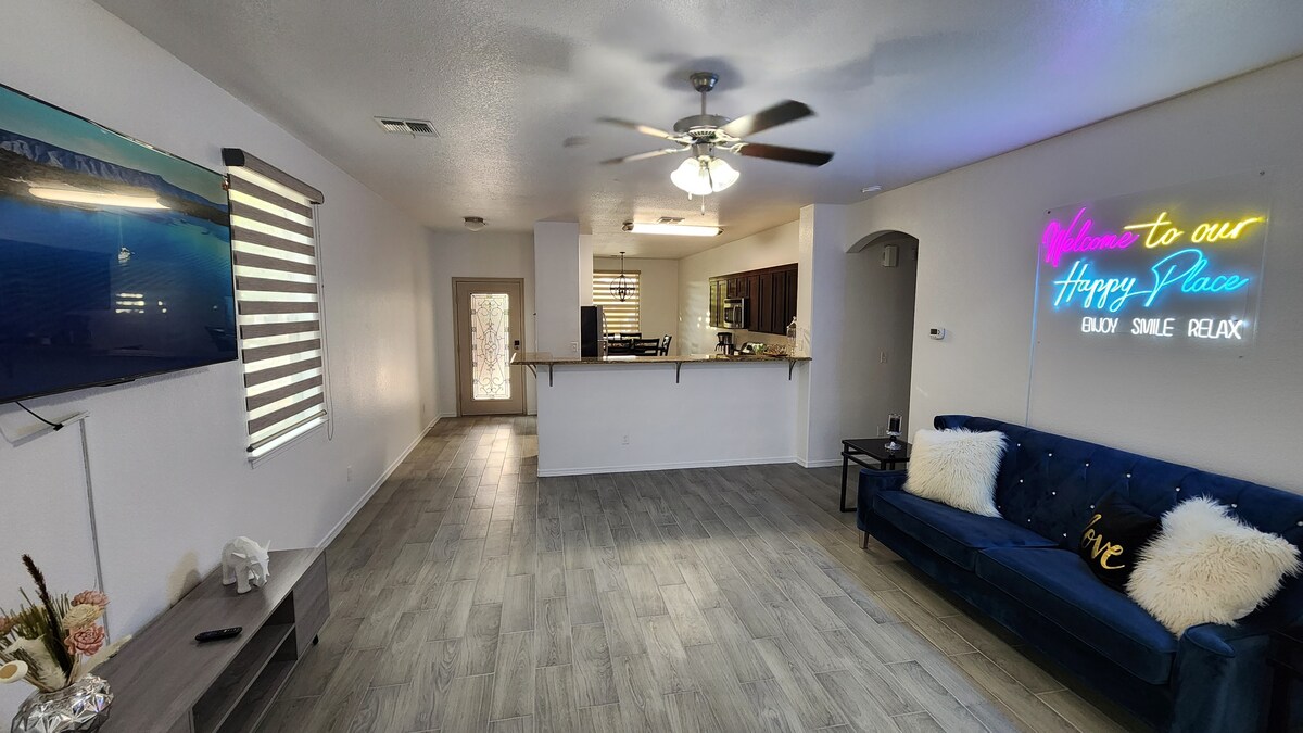 Dobro došli u svoj dom, daleko od kuće! Ovaj moderan savremeni dom je osmišljen imajući na umu udobnost putnika i idealan je za porodice i poslovne putnike. Naš cilj je da obezbijedimo prostor u kojem gosti mogu da rade i opuste se istovremeno. Ovo nikada nije živelo u domu se nalazi u mirnom komšiluku sa brzim pristupom I-10, 2 minuta od lokalnih restorana/Walmart, 9 minuta od pijace Eastlake Marketplace/Amazon, 25 minuta od aerodroma, most Zaragoza International i Downtown.