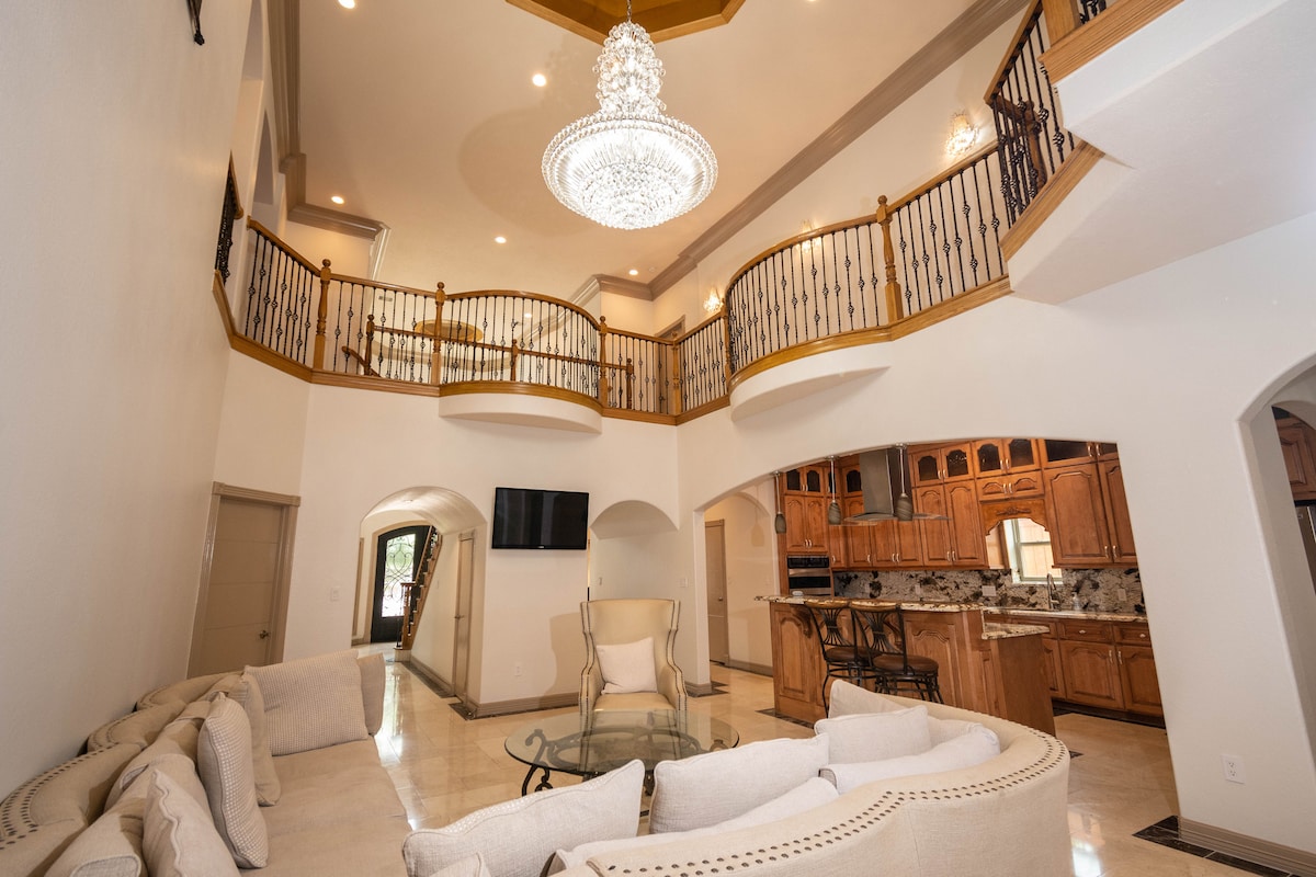 Dobro došli u Space City Mansion! Ovaj luksuzni dom putnicima pruža prostranu oazu u prestižnom i luksuznom okrugu Galleria u Hjustonu. Smještaj nudi više od 4.000 kvadratnih metara prostora u kojem mogu da uživaju cela porodica. Ključne karakteristike: ⟣ Rezervni generator u slučaju nestanka struje ⟣ Do tržnog centra Galleria (najveći tržni centar u Teksasu) ⟣ 15 minuta do centra grada ⟣ Velika hidromasažna kada sa hidromasažnom kadom ⟣ Zatvorena teretana Bezbjednosni ⟣ nadzorni sistem ⟣ Spoljašnji salon sa TV-om ⟣ Vrhunski namještaj i dekoracija