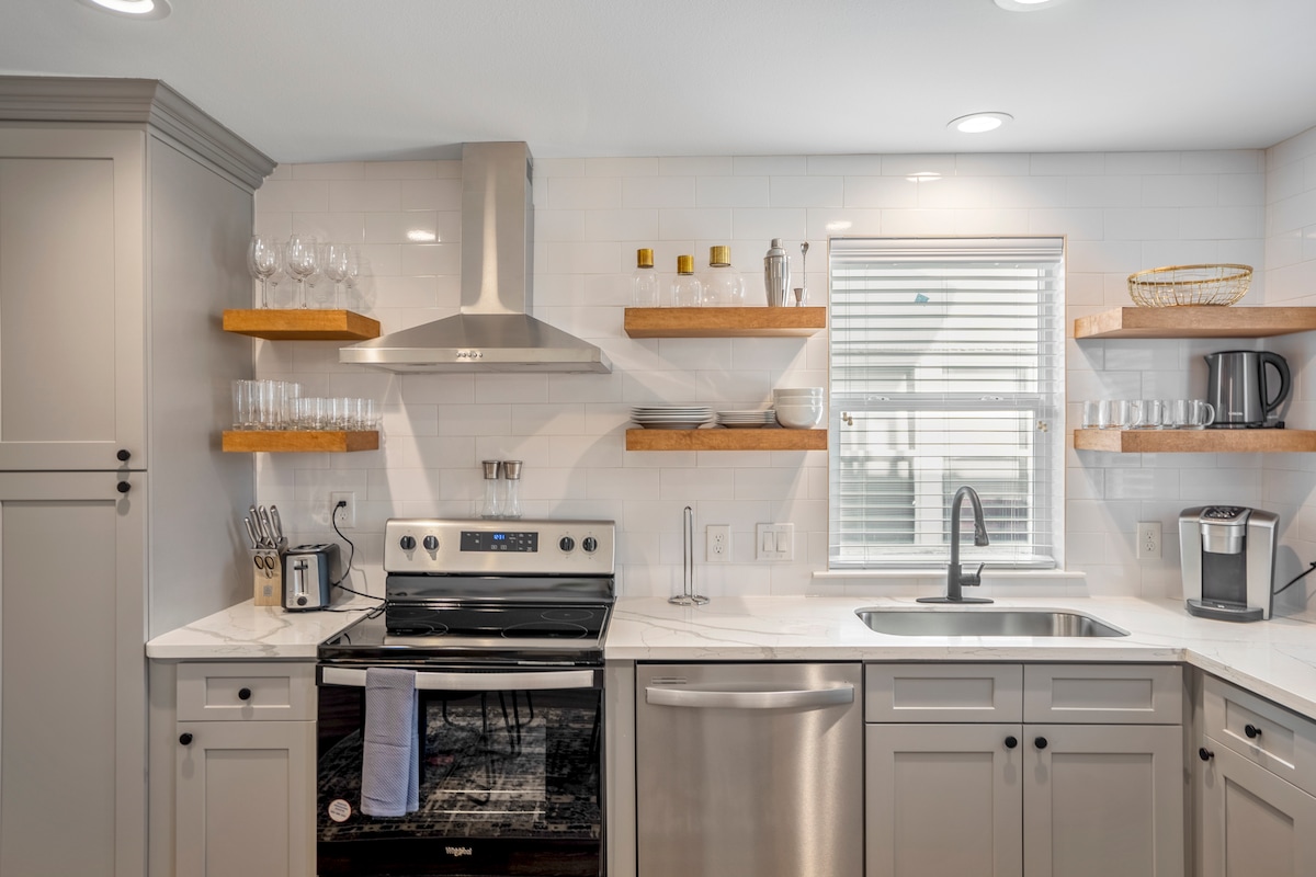 Velike grupe su dobrodošle! Za 18 osoba! Pripremite se za ZABAVU! 7 minuta do centra grada, 15 minuta do aerodroma Hobi. Opremljeno umjetničkim djelima i jedinstvenim namještajem, 3.800sf, 6 kreveta, 4 kupatila, 9 kreveta, ograđenim, privatnim parkingom, opremljenim kuhinjskim i kućnim potrepštinama, trpezarijskim stolom sa 14 sjedišta, masivnim kaučem, ogromnim prilagođenim tušem, mrežastim Wi-Fi mrežom, 8 pametnih televizora, Sonos zvučnicima u svim prostorijama, potpuno završenom garažnom igraonicom sa klima-uređajem, prostorima za sjedenje na otvorenom, ognjištem, roštiljem, bilijar stolom za bilijar, stolom za ping pong, stolom za poker, TONAMA igara u zatvorenom i na otvorenom!