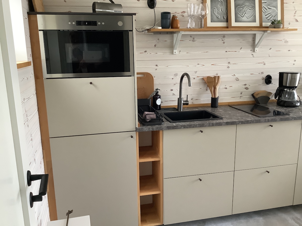 Novoizgrađena minijaturna kuća - savršen smještaj za one koji žele da pristupe domu neuobičajeno! Iz kuće se pruža spektakularan pogled sa šumom kao najbližim komšijom. Uprkos nekoliko kvadratnih metara, tu je jednostavna kuhinja, trpezarija, toalet i udoban prostor za spavanje na osami sa krevetom od 140 cm. Napolju se nalazi i zaseban balkon, privatni spoljni tuš sa toplom i hladnom vodom i veće šljunkovito dvorište sa baštenskim namještajem i roštiljem.