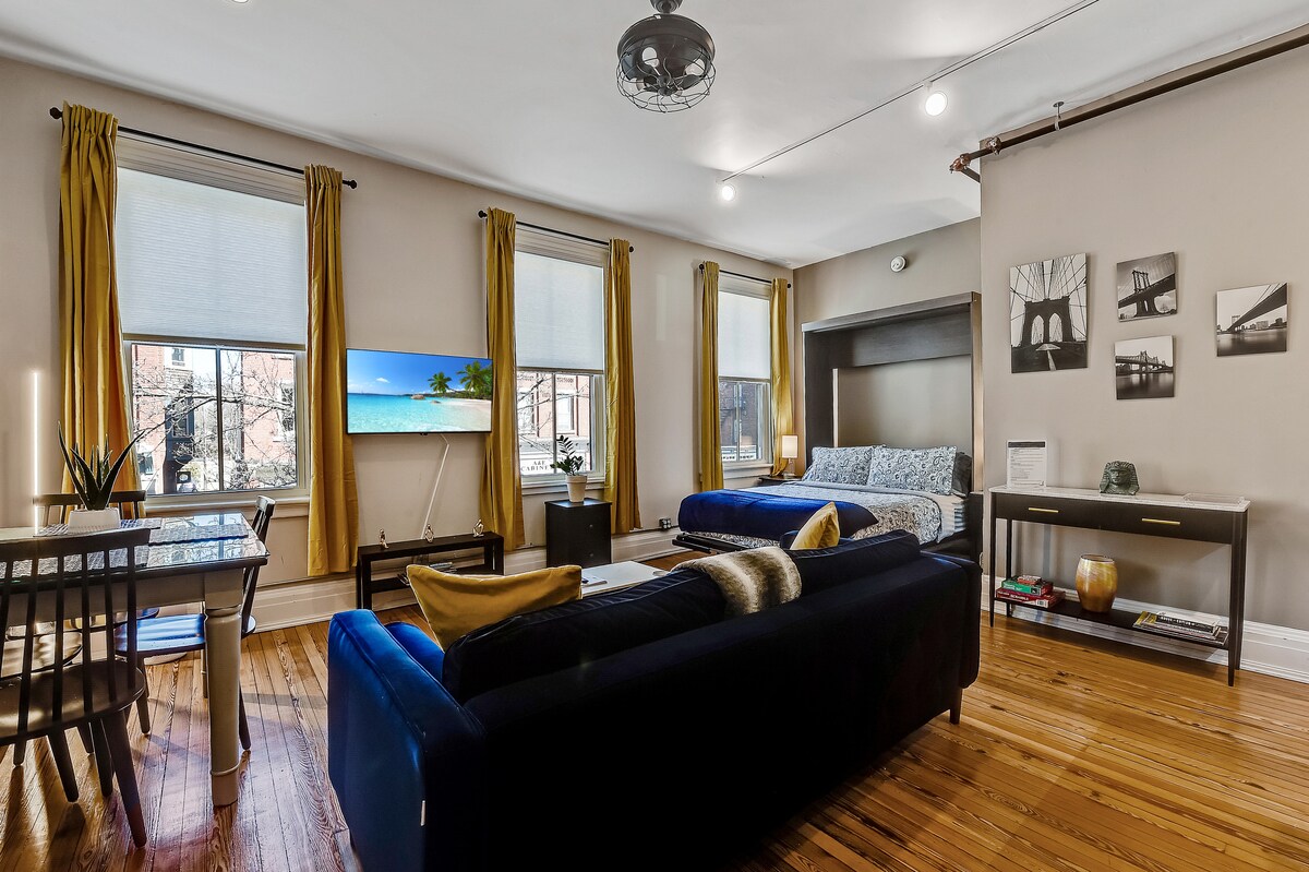 Located on Beacon’s Main St The Luxe Loft Studios place you in the heart of it all just steps from the Metro North train, Dia Museum, top restaurants, galleries & shopping. Designed for relaxation & rejuvenation, each studio offers an indulgent steam shower, a fully equipped kitchen with Keurig and complimentary coffee and tea, bottled water, Smart TV, a queen-size bed with hotel-quality linens, and a Samsung washer and dryer. Explore Beacon and the Hudson Valley with ease no car required.