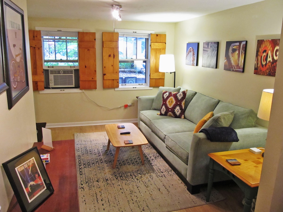 Ovo je vaša lansirna rampa za razgledanje grada! To je starinski stan sa sopstvenim privatnim ulazom i prostorom. Nalazi se na pješačkoj udaljenosti od velikog izbora restorana, barova i kafića. Sa biciklom, taksijem, Uberom/Lyftom, autobusom ili EL vozom možete da budete u centru grada za nekoliko minuta. U neposrednoj blizini mnogih sjajnih lokacija u Čikagu, kao što su Wrigley Field, The United Center, White Sox Park, itd...Smještena u ukrajinskom selu, sigurna, gostoljubiva četvrt s mnogo istorije.