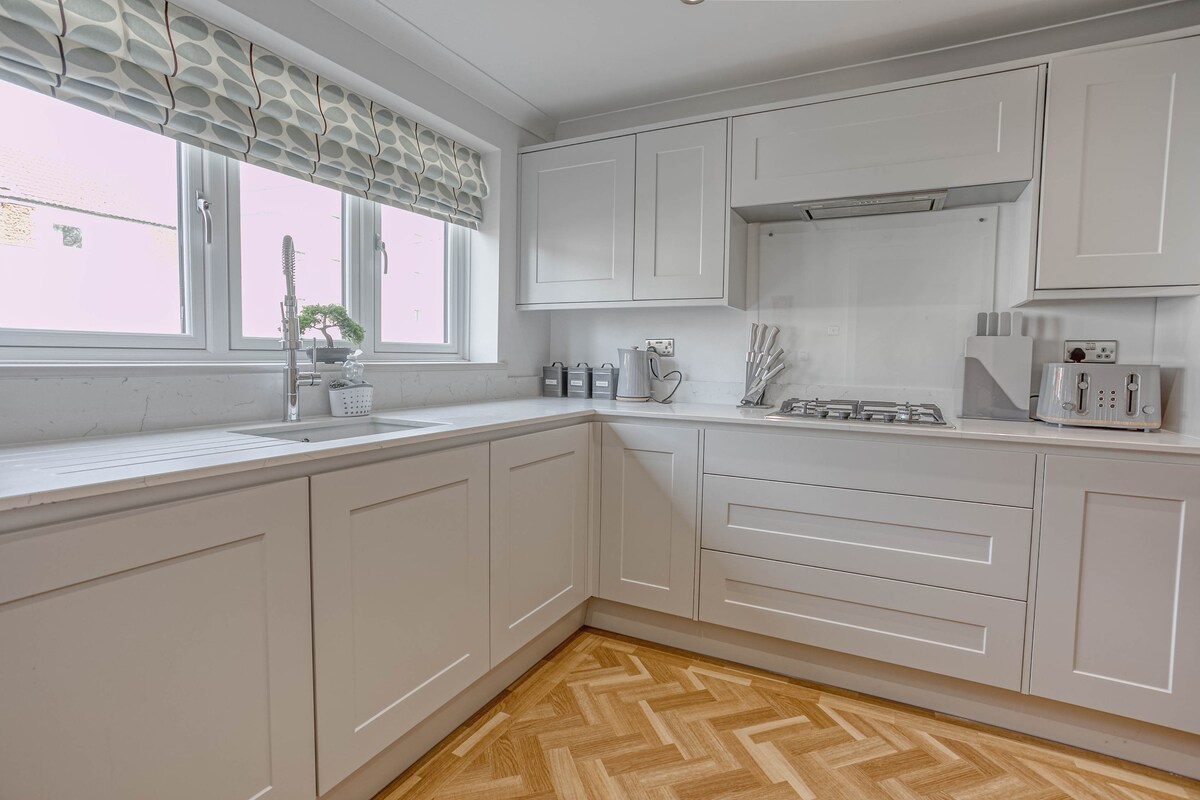 Novouređena moderna, modem, poluodvojena kuća za odmor sa 2 spavaće sobe. Nudi dvokrevetnu sobu i dvokrevetnu sobu, sa pametnim televizorima i porodičnim kupatilom na spratu sa tušem. U prizemlju se nalazi kuhinja, trpezarija i dnevni boravak otvorenog tipa sa još jednim pametnim TV-om, odvojenim komunalnim uslugama/garderobom i WC-om u prizemlju. Napolju je unutrašnje dvorište sa sedištima i šupom za odlaganje bicikala. Privatna vožnja nudi prostor za dva automobila. Žao nam je, nema kućnih ljubimaca.