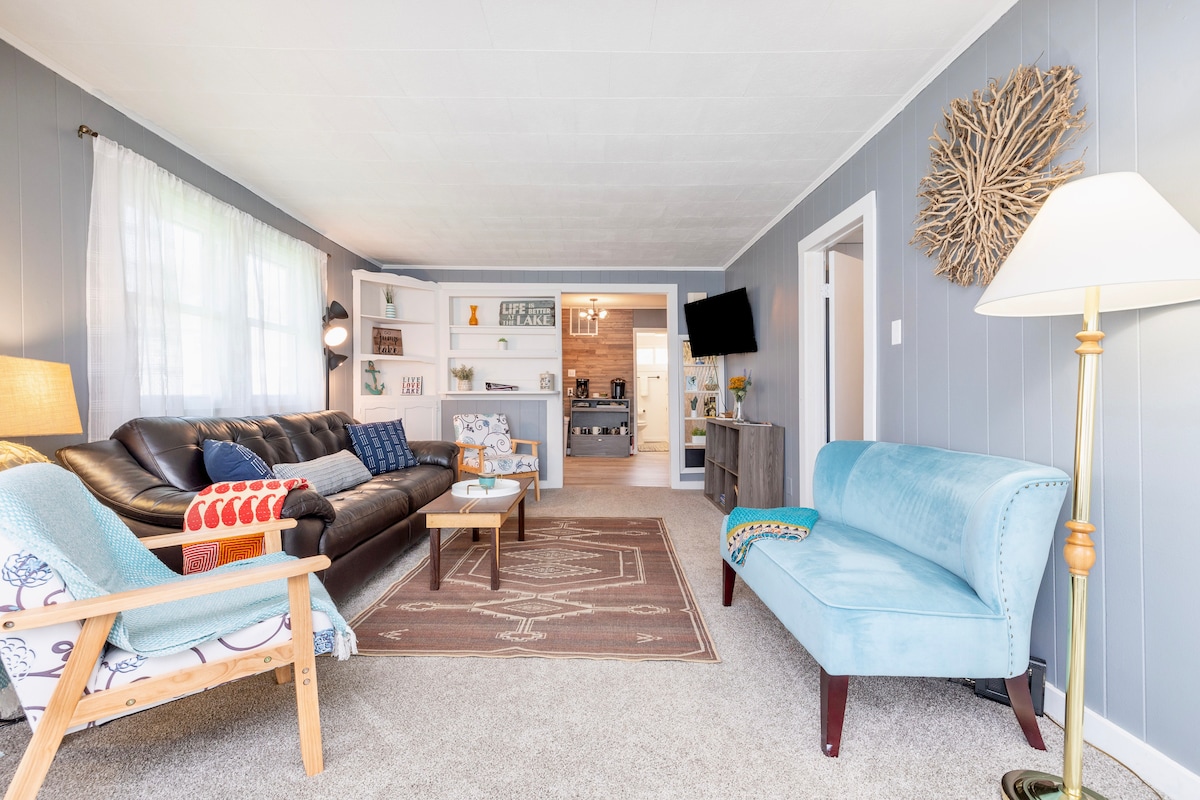 Odmorite se i opustite u ovoj mirnoj oazi! Okupite se sa porodicom ili prijateljima u otvorenom dnevnom boravku ili sjedite na natkrivenom trijemu i pijuckajte jutarnju kafu ili čašu vina u sumrak. Uživajte u mirnoj četvrti na ostrvu Orčard ili prošetajte do plaže i igrališta na Foks Ajlendu. Bićete u blizini prodavnica i restorana u Rasel 's Pointu. Ova seoska kuća je savršeno mjesto za porodični izlet na jezero, romantični odmor ili vikend za djevojke/momke.