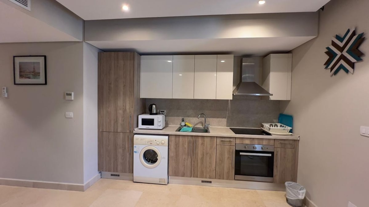 Moderan, porodični stan u Scandic Resort Hurgada sa predivnim pogledom na more i bazen. Ima udobnu spavaću sobu, dnevni boravak sa sofom na razvlačenje, potpuno opremljenu kuhinju i privatni balkon. Uživajte u sadržajima odmarališta kao što su bazen i bašte, kao i u teretani (uz dodatnu naknadu). Samo nekoliko koraka od plaže i živopisnih koralnih grebena — savršeni za ronjenje. Idealno za porodice, parove ili osobe koje rade na daljinu i traže elegantan, opuštajući odmor na Crvenom moru.