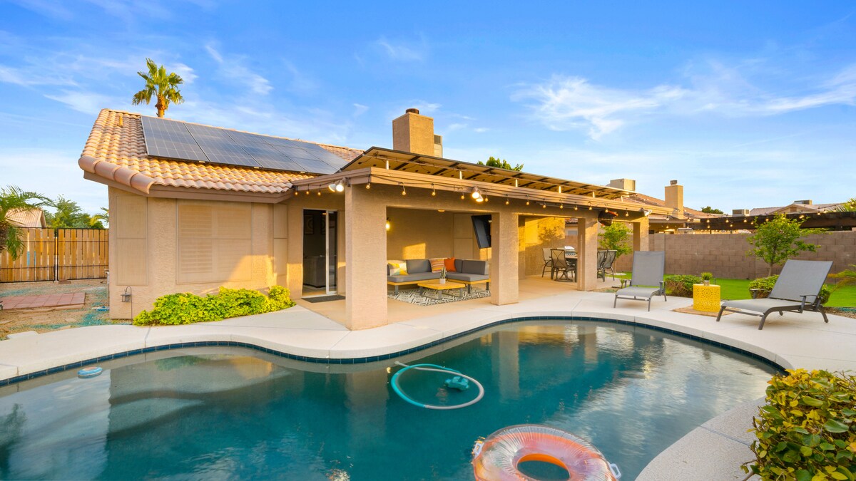*POPUST! Doživite AZ u udobnosti! Ovaj prelijepo renovirani dom sa 4 spavaće sobe ima sve što vam je potrebno za opuštajući odmor! Uz pjenušavi grijani bazen, bilijarski sto, društvene igre i televizore u svakoj spavaćoj sobi, bićete beskrajno zabavni. Potpuno napunjeni sadržaji se osjećaju kao kod kuće. Povedite porodicu i prijatelje! Ovaj udoban dom i dvorište spremni su za zalaske sunca i sjajna vremena! REZERVIŠITE ODMAH! **Grijani bazen je dostupan uz dnevnu naknadu * Potrebno je zatražiti funkcije grijanja bazena.