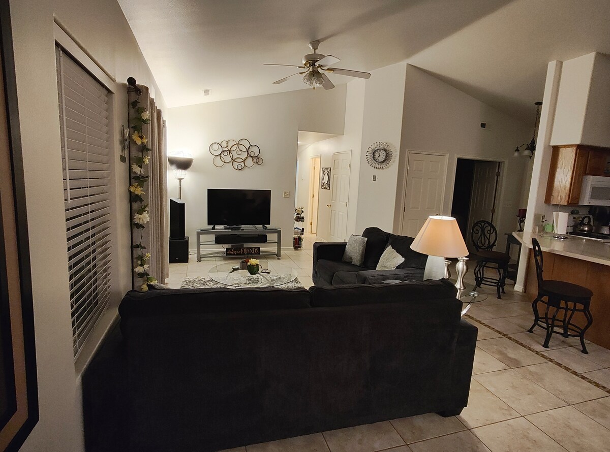 Pogledajte o čemu se radi u čarobnom, prelepom, sunčanom južnom Južnom Južnom Juti. Ima toliko toga da se radi i vidi! Ova udobna kuća sa 3 spavaće sobe i 2 kupatila za 8 osoba. Uključuje udoban kauč za opuštanje, spoljni prostor s ognjištem na plin i roštiljem na plin. Kuhinja je potpuno opremljena sa svime što vam je potrebno. To je 20 minuta od nacionalnog parka Zion, 10 minuta od rezervoara Sand Hollow i golf odmarališta i odmah preko puta terena za kuglice za uragan. Opremljen internetom velike brzine