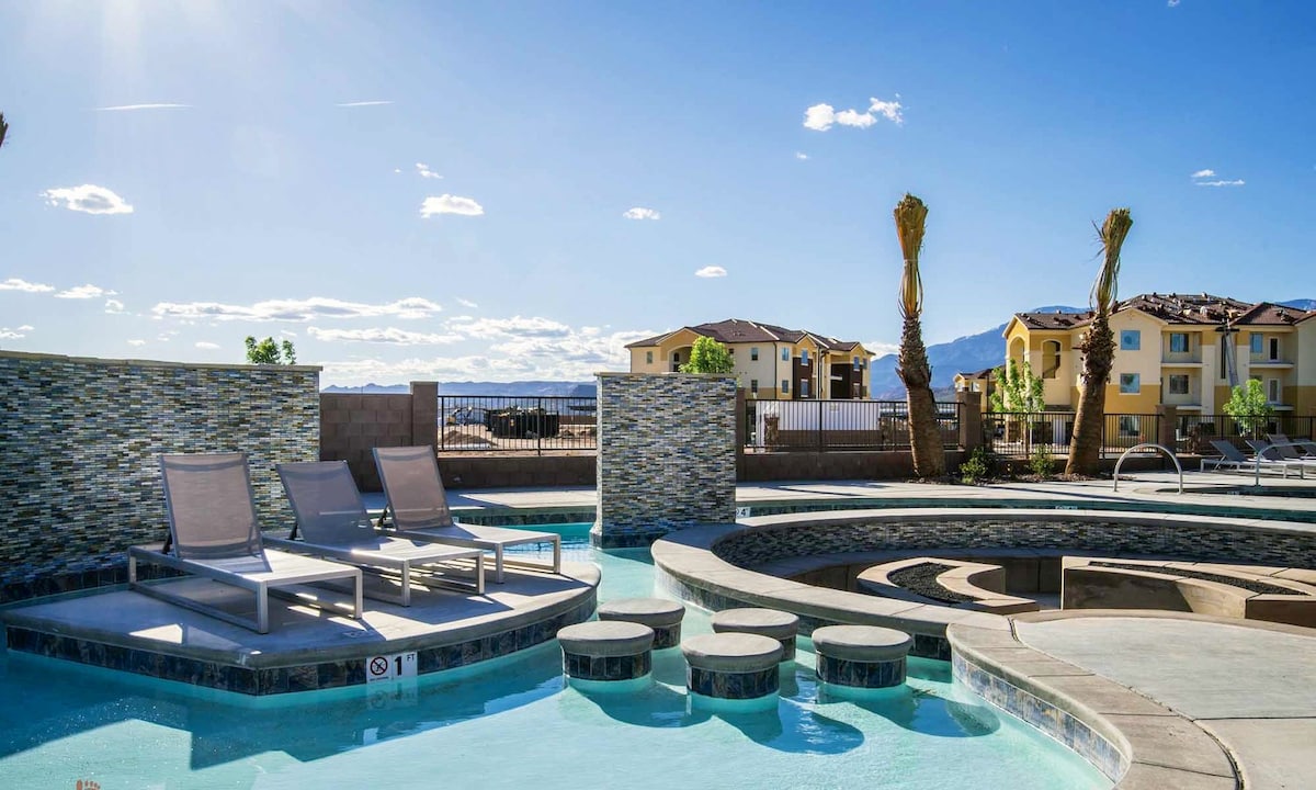Jedinica pored bazena, može da spava do 16 (5 spavaćih soba), opremljena kuhinja, 5 televizora ravnog ekrana sa zvukom Roku/Sonos, Xbox (reproducira DVD-ove), stoni tenis. Novi bazen i hidromasažna kada (otvoreni tokom cijele godine), lijena rijeka, prostori za opuštanje, dječiji suncobran i tobogan, klupska kuća sa fitnes centrom i stolom za bilijar, prostor za roštilj i ognjišta. Savršena lokacija za popularne izlete na jugu Jute - Zion NP (25 min), Snou kanjon (30 min), Send Holou (10 min), Red Cliffs, Tuacahn, golf, planinarenje, rafting na reci, biciklizam i još mnogo toga!