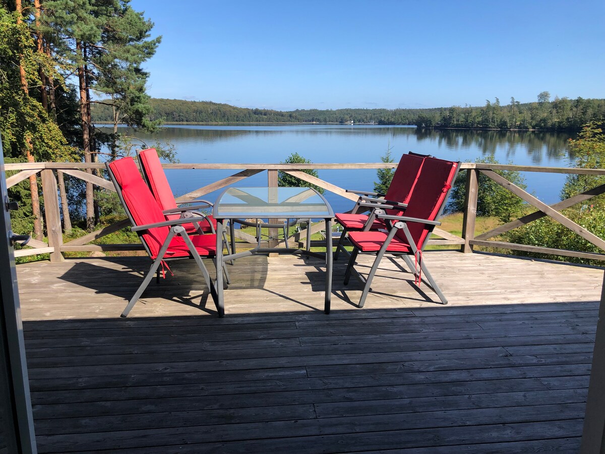 Uživajte u švedskoj prirodi! Smještena u blizini šume sa širokim pogledom, u blizini jezera Bolmen u Smålandu (južna Švedska), tipična je švedska kuća za odmor. Uživajte u pucketajućoj vatri sa toplom čokoladom zimi i kupajte se u jezeru ili šetajte leti i sastanite se sa jelenom ili losom. Kućni ljubimci nisu dozvoljeni. Pušenje u kući nije dozvoljeno.