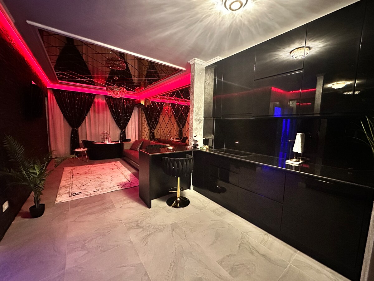 LUKSUZNI smještaj za 2 sobe. Grin Park , u blizini aerodroma. Potpuno namještena i opremljena kuhinja ( pribor za jelo, posuđe, tanjiri, šolje, čaše) , frižider , aparat za espreso sa kapsama Nescafe Krups Spoljašnja terasa Samostojeća kada, mašina za veš, fen za kosu, posteljina i pamučni peškiri Pametni TV, Wi-Fi, kablovska TV Konfigurisane led diode sa daljinskog upravljača u obje prostorije Prijava je u 14:00, a odjava u 11:00 sati, uz mogućnost kasne odjave uz naknadu. Zabave nijesu dozvoljene!