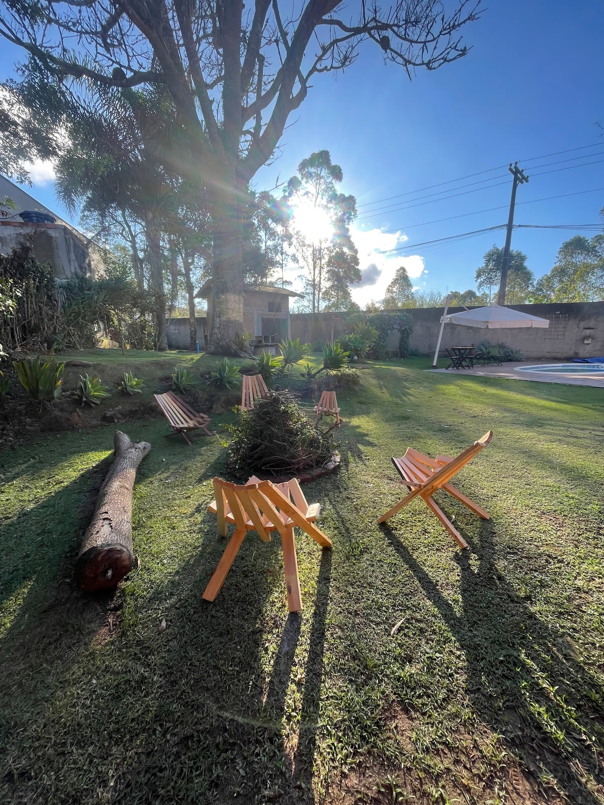 Nossa chácara se nalazi u lako dostupnom ruralnom području, u ograđenom stanu sa 24-satnim obezbjeđenjem. Osim toga, naša zemlja je ograđena zidovima. Poljoprivredno zemljište je 2.000 metara sa dovoljno prostora i zelenilom za slobodno vrijeme, sa sezonskim voćkama i bazenom, sve ekskluzivno!!! Naš prostor nam je stalo i ukrašavamo ga sa puno ljubavi i kvalitetnih predmeta u kojima možete da uživate vi koji želite da se odmorite i imate privatnost. Mjesto za odmor! Brza Wi-Fi mreža, odlična za KUĆNU KANCELARIJU.