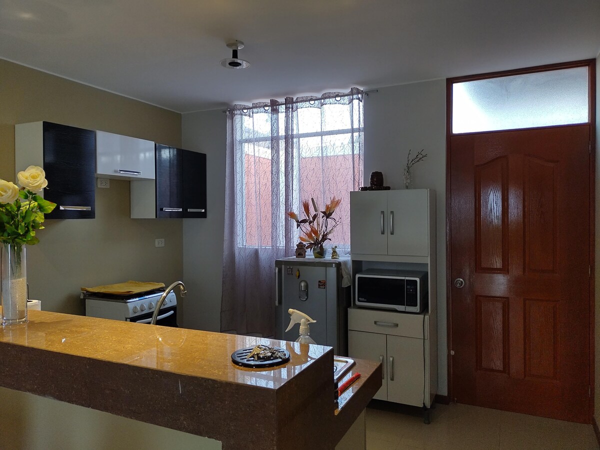 Stan sa nezavisnim ulazom i svim sadržajima za vašu porodicu ili par . Imamo mnogo biljaka za ljubitelje prirode. Nalazi se na trećem spratu - sva terasa je privatna za gosta ! 8 minuta od tržnih centara, Plaza de Armas, Huakačine i mnogih turističkih centara u Iki.