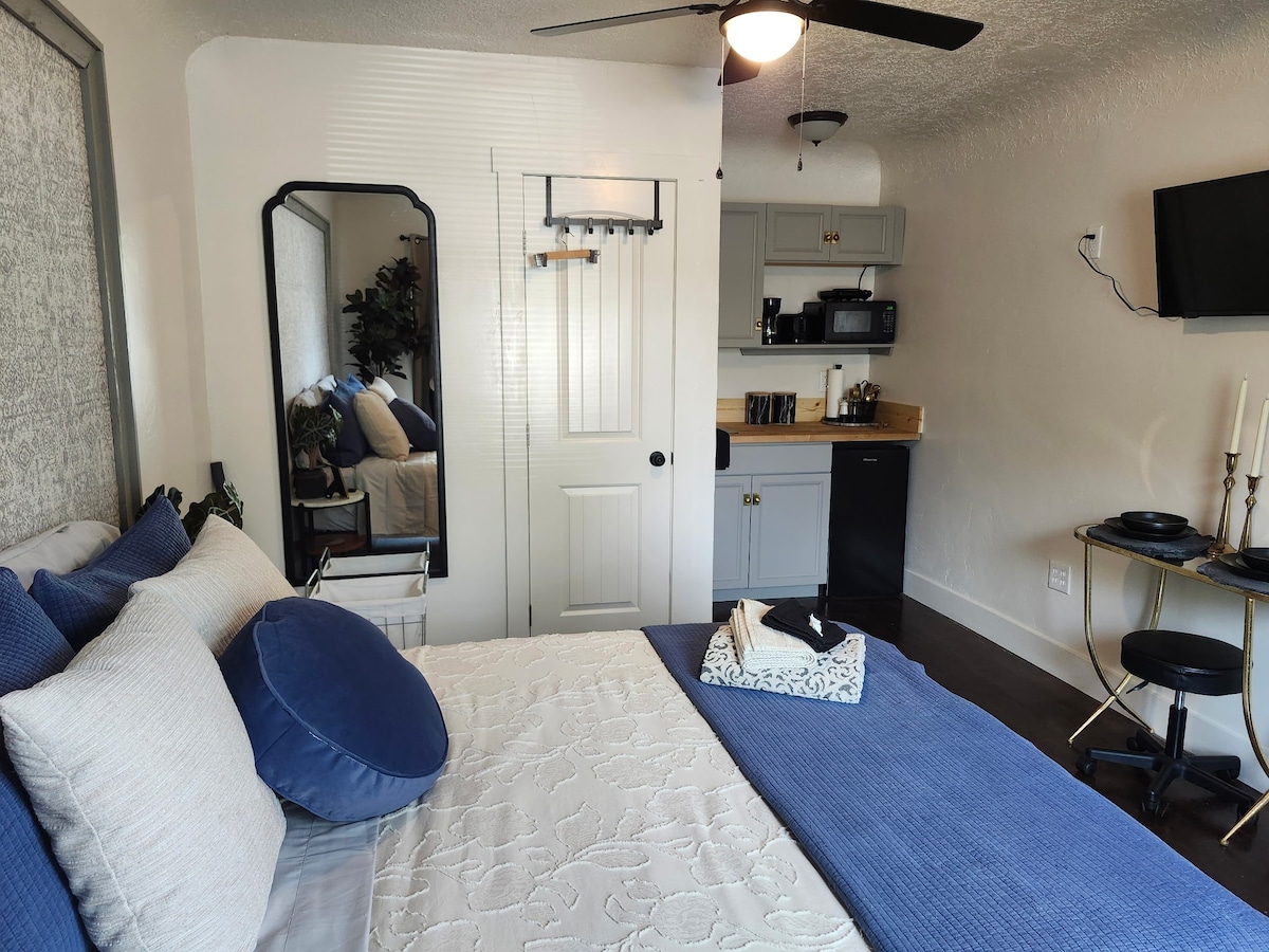 Uživajte u mirnom odmoru u našem Temple View Havenu. Ovaj prostor je sprat našeg doma koji smo preuredili, dodali glavno kupatilo i stvorili utočište za parove da se opuste i uživaju zajedno. Ući ćete kroz svoj privatni ulaz na poleđini našeg doma i popeti se stepenicama koje su prvobitno bile ušuškana u ormaru, skoro skrivenom stepeništu na spratu. Stepenice su malo strme, a plafoni su niski, pa pazite na stepenice i glavu. Nema kuhinje.