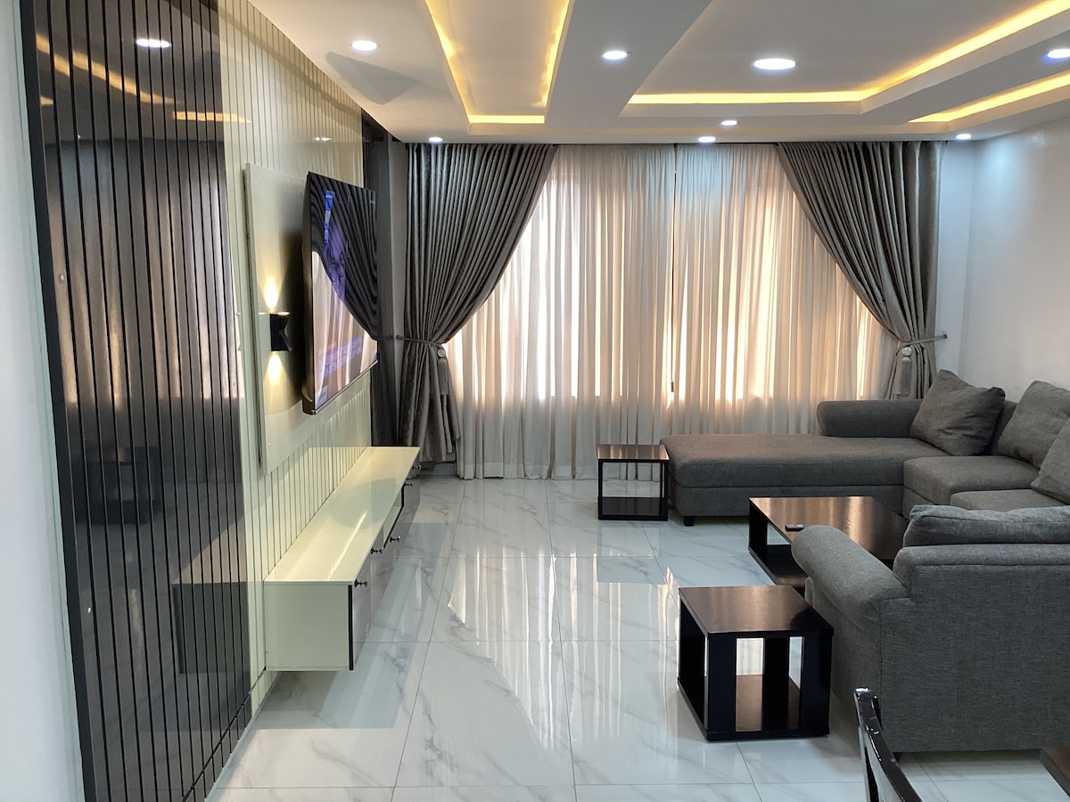 Dobro došli u ovaj prelijepi dizajnirani jednosobni stan, koji se nalazi u ulici Toyin ikeja, u blizini svuda. To je potpuno opremljen modernim i sofisticiranim sadržajima koji će vam ponuditi besprekorno iskustvo života, ovaj stan kombinuje eleganciju sa funkcionalnošću, pažljivo ukrašen elegantnim namještajem, 65-inčnim Samsung QLED TV-om i savremenom umjetnošću, idealan za opuštanje i zabavu. Prostrano utočište sa udobnim krevetom, potpuno opremljena kuhinja sa najsavremenijim aparatima.