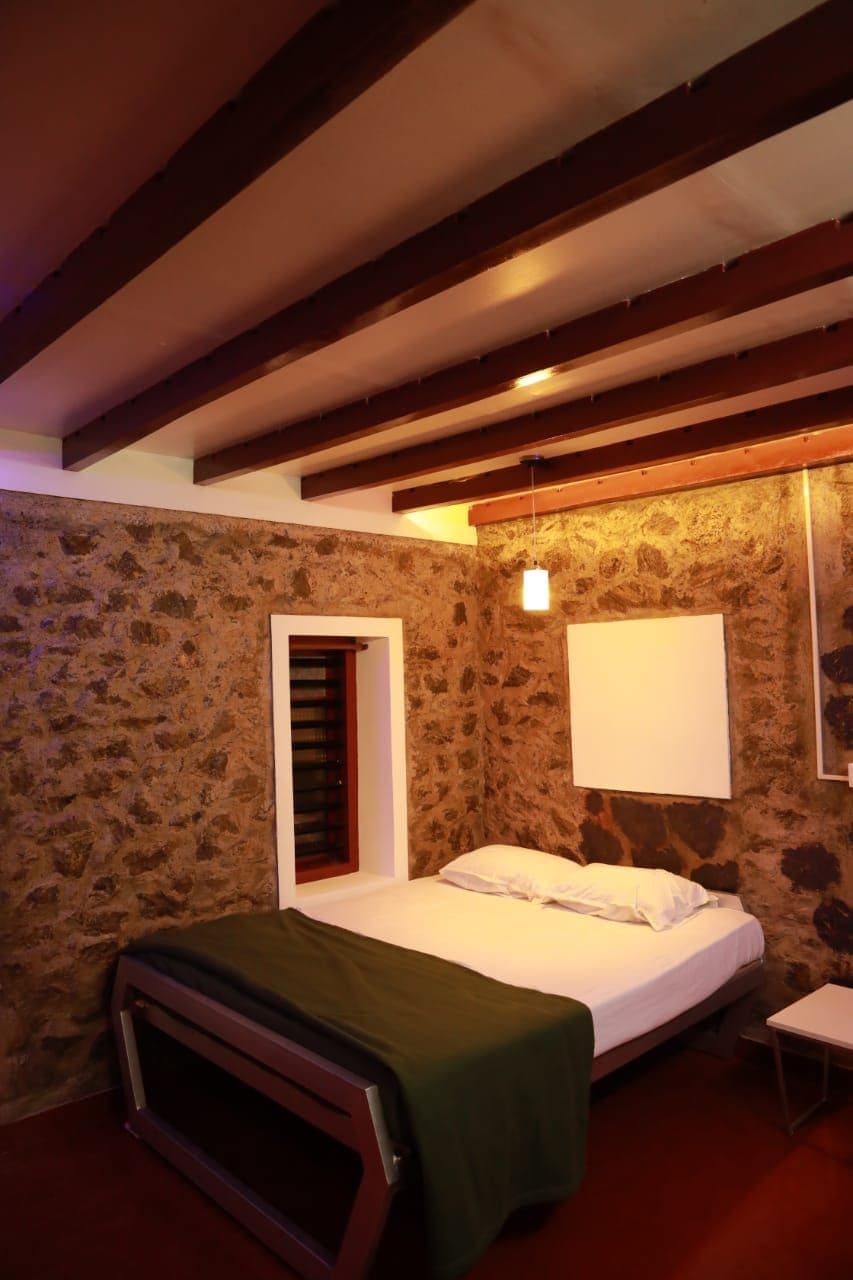 Just 30kms from Vagamon and Thekkady, The Ledge is a private boutique villa located in Peerumedu, a hill station very little explored in Kerala. Designed by renowned architect Vinu Daniel, the villa is spread across 2 acres of beautifully landscaped land. This two-bedroom retreat blends modern luxury with natural serenity, making it ideal for couples, art lovers, and getaway seekers.