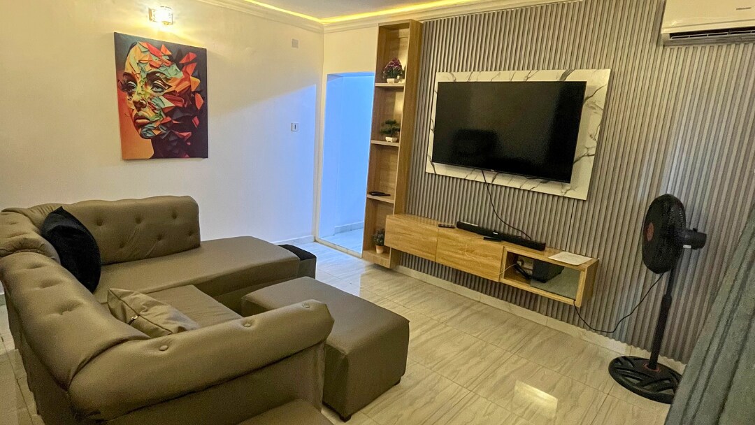 Experience luxury living in this stunning 1-bedroom apartment, perfectly blending comfort and style. Enjoy: 24/7 Electricity Round-the-clock Security Cozy Environment Luxurious Entertainment Space Exceptional Service from Dedicated Staff Ideally located in a secure mini-estate ( ajasa command road, abule-egba,lagos ) just 25minutes from the airport. Make this apartment your dream home! Due to grid conditions, AC use will be limited on generator to prioritize longer inverter power.