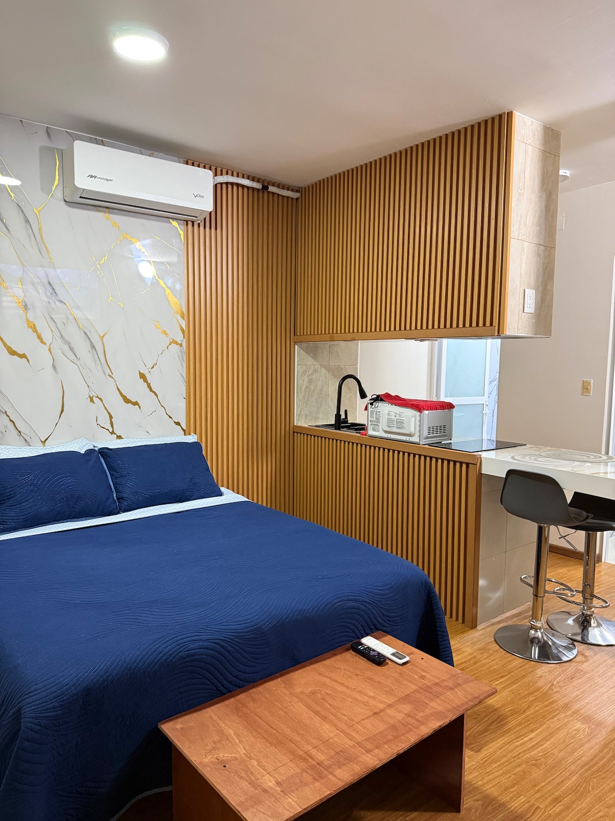 🌿Mini stan nekoliko koraka od plaže – stambeni kompleks Reforma🌴 12 m² čiste udobnosti za 2 osobe. Udoban bračni krevet, kupatilo sa tušem, mini-frižider, mikrotalasna pećnica i aparat za kafu. 40-inčni Smart TV, Wi-Fi i klima-uređaj. Samo 2 minuta hoda od plaže i okružen restoranima, kafićima i prevozom. Savršeno za romantična putovanja ili poslovna putovanja. Sve osnovne stvari u pametnom i modernom prostoru! Rezervišite svoj kutak koji se nalazi skoro ispred okeana! 🌊✨