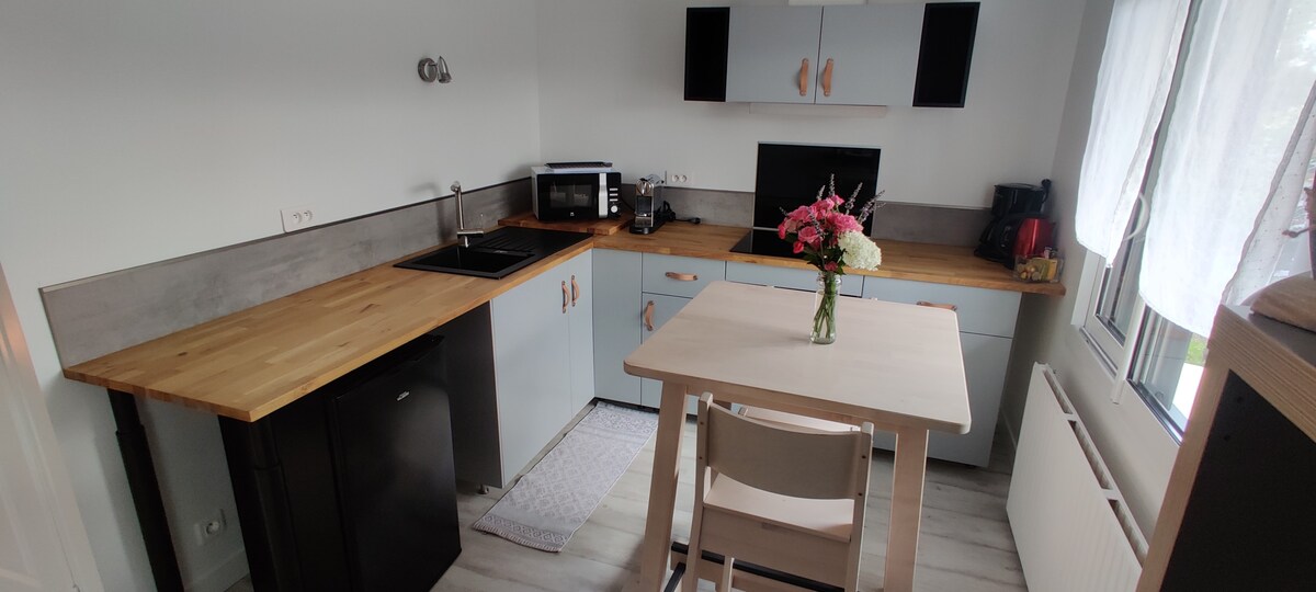 Nezavisni stan na 1. spratu paviljona, potpuno opremljen (mašina za pranje veša, frižider, vlakna, narandžasti TV, Netflix, Dizni+…), svetao, prozračan, prelaz i sa pogledom na šumovitu baštu. Obnovljen je 2023. godine. Autobuske stanice udaljene 1 min i 5 min, a Igny RER C stanica 17 min hoda. Automobilom: Brzi pristup N118/A10/A6, 10 minuta od „Plateau de Saclay“, Politehničke škole.