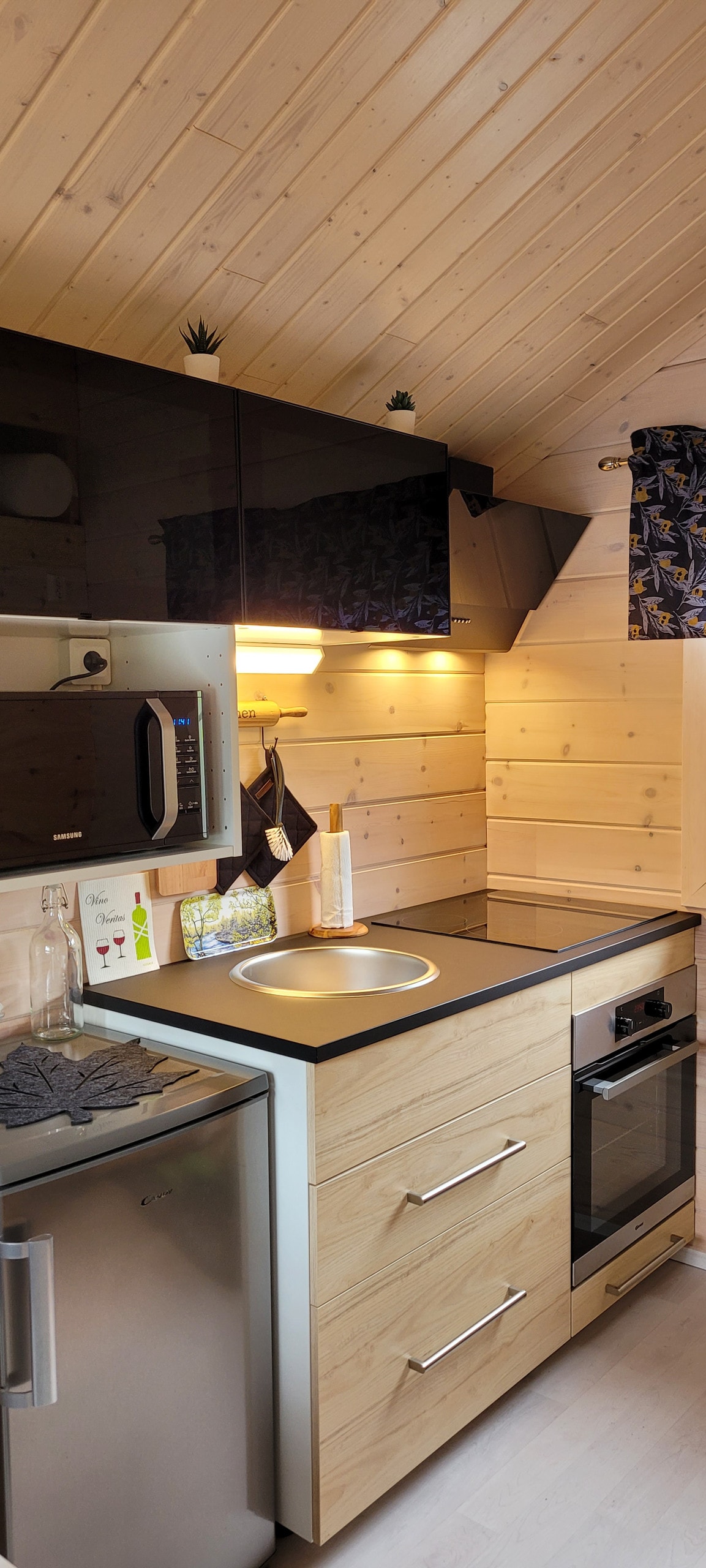 Kuća za odmor na obali severnog Konnevedena, na strani večernjeg sunca. Plitka plaža sa peskovitim dnom pogodna za decu. Objekat ima sopstvenu saunu, đakuziju sa dizel grejačem i veliku terasu. Sup daska je uključena u cenu smeštaja. U dvorištu se nalaze kućica za igru i drveni šator Apartman ima 3 spavaće sobe, toalet, veliki spojeni dnevni boravak/kuhinju. Smart TV i Wi-Fi. U blizini se nalazi kanal Neiturin, gde se nalazi letnji restoran.