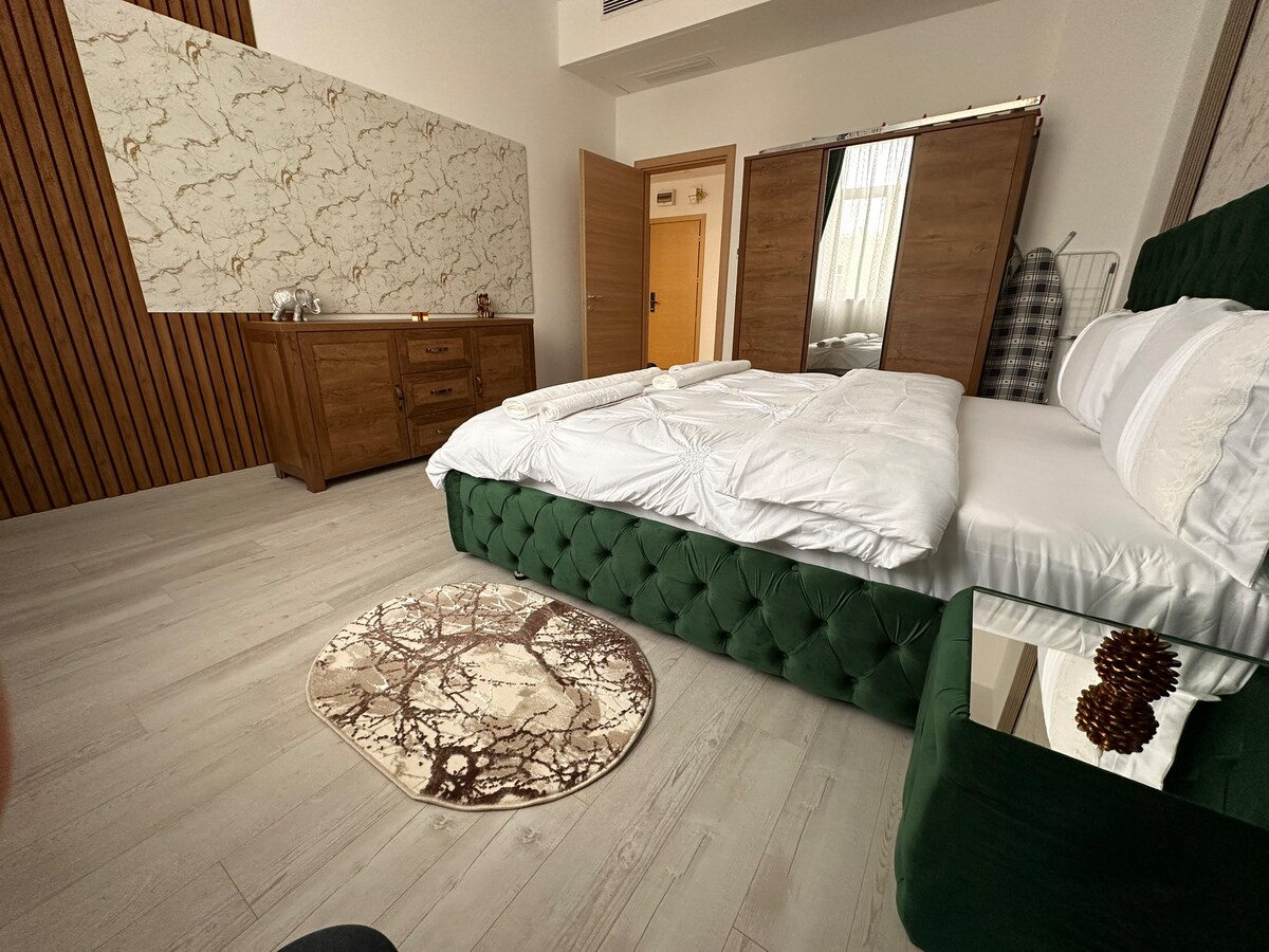 Uživajte u elegantnom doživljaju u ovoj rezidenciji u centru grada. Ovaj stan ima sledeće sadržaje: Privatni parking sa barijerom Zidovi uređeni sa Stucco Veneziano 4K Smart TV sa Netflix-om i klima-uređajem Kompleks nudi: unutrašnje i spoljašnje bazene, mokre i suve saune, đakuzi i fitnes centar. Udaljenost do Velnes centra iznosi 500 metara, a do Akva bašte 550 metara, otprilike 7 minuta hoda. Cijena za pristup bazenu je 70 RON po osobi.