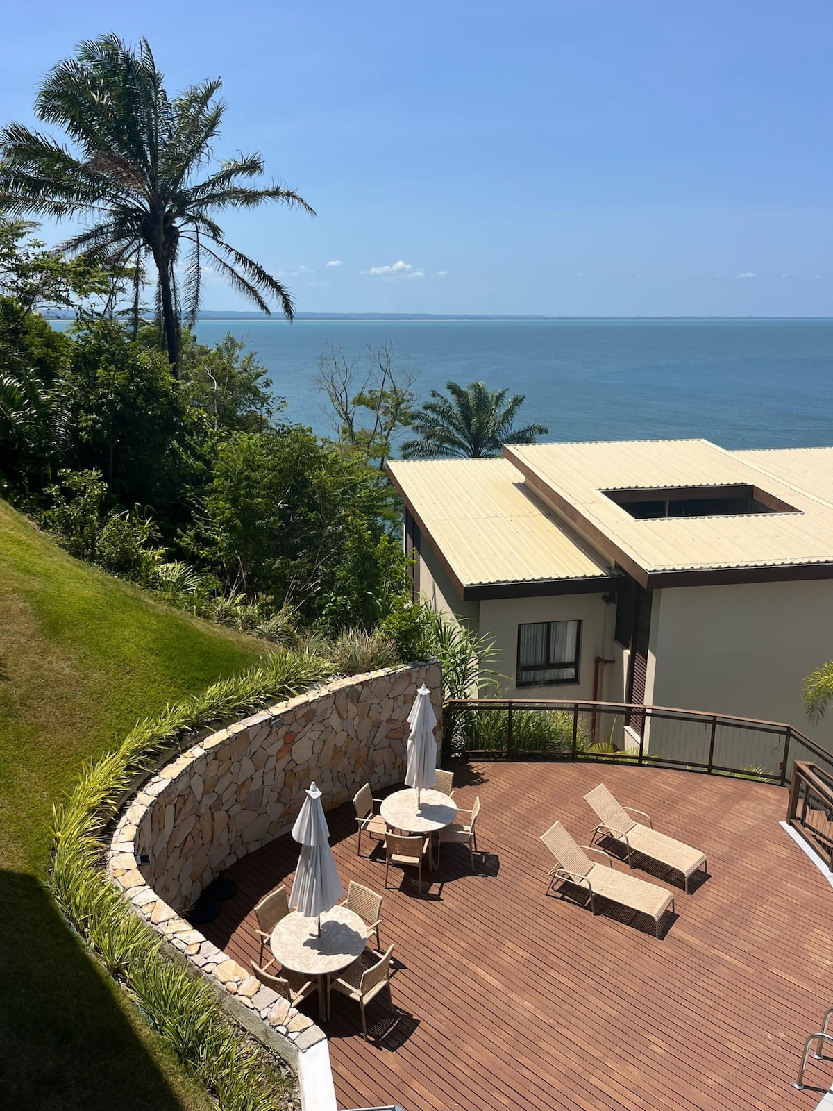 No alto do Morro de São Paulo, o Canto das Águas é um refúgio com vista para o mar e o pôr do sol de tirar o fôlego. Da praça central até aqui é uma caminhada de 15–20 min (1km), com algumas ladeiras e degraus. A recompensa é toda beleza natural exclusiva e privacidade. Ideal para casais, amigos ou viajantes solo que querem acordar com o azul do oceano. Estamos a 80m acima do nível do mar, com acesso do condomínio às trilhas para as praias Porto de Cima, Ponta da Pedra, Praia da Argila e Gamboa.