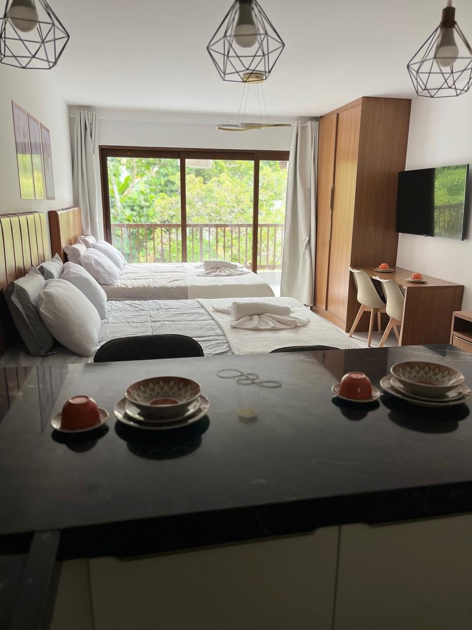 Novosagrađeni stan, 100 m² privatnog prostora!! 50 m² između dnevne sobe - kuhinja potpuno opremljena kaučem i SmartTV 40¨sa NEBOM; i apartmana sa bračnim krevetom i SmartTV-om 4k 43''; i 50 m ² balkona sa privatnim bazenom i pogledom na atlantsku šumu. Sva okruženja su prostrana, klimatizovana i Wi-Fi. Nalazi se na početku 3. plaže, 2 minute od mora, pravo je mjesto za uživanje u Morou; u blizini supermarketa, barova i restorana, ali u mirnom rezidencijalnom području.