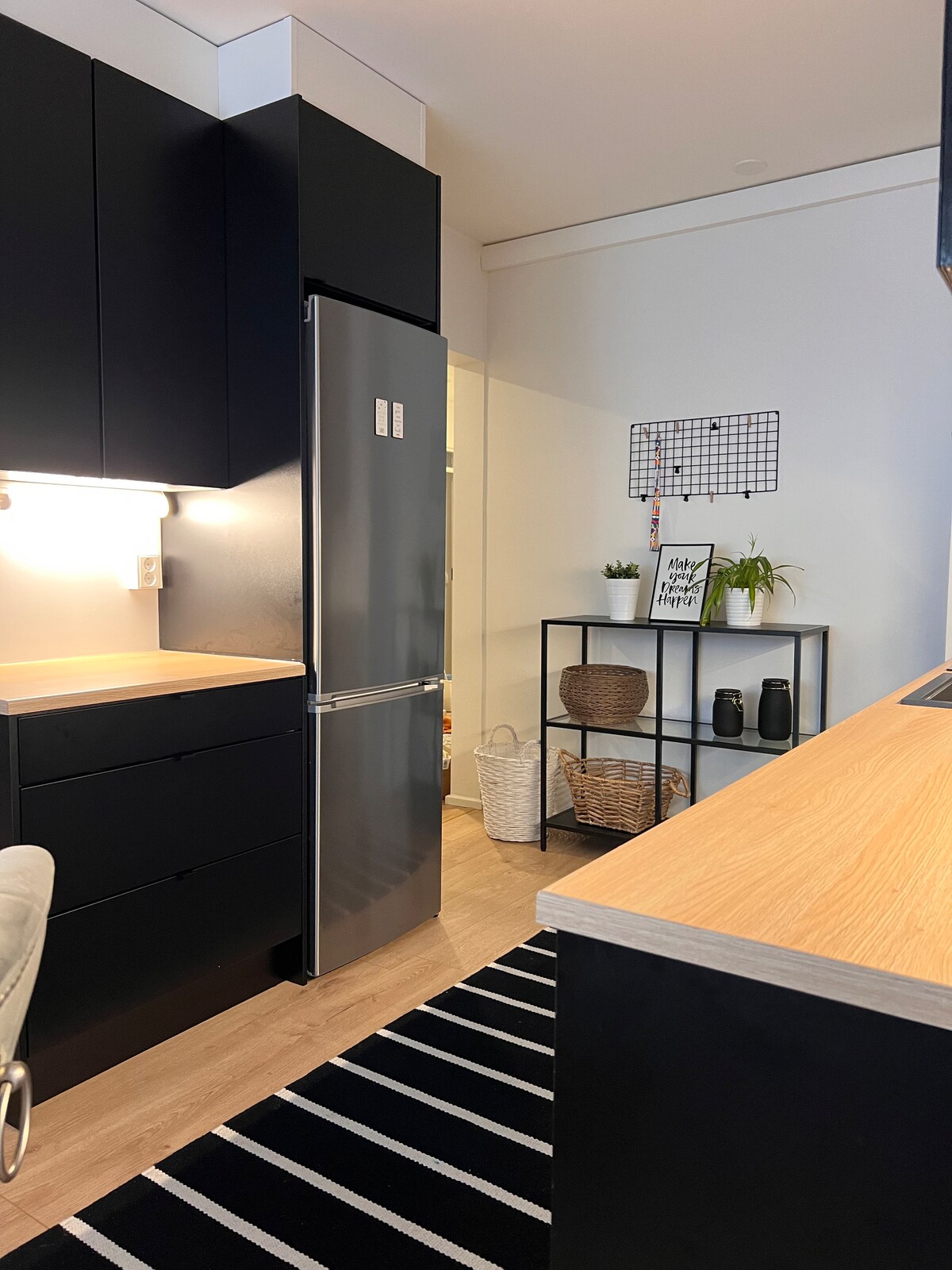 Uživajte u udobnom boravku na drugom spratu u kompaktnom stanu površine 45 m² u centru Seinäjokija. Železnička stanica je udaljena samo 500 metara, a najbliža prodavnica namirnica je udaljena 350 metara. Posteljina i peškiri vas uvek čekaju i deo su zakupnine. Spava za šest osoba: bračni krevet, sofa na razvlačenje i dušek na naduvavanje. Stan ima mašinu za hlađenje, a spavaća soba ima zavjese na prozorima za zamračivanje. Imate i besplatan besplatan parking za jedan automobil.