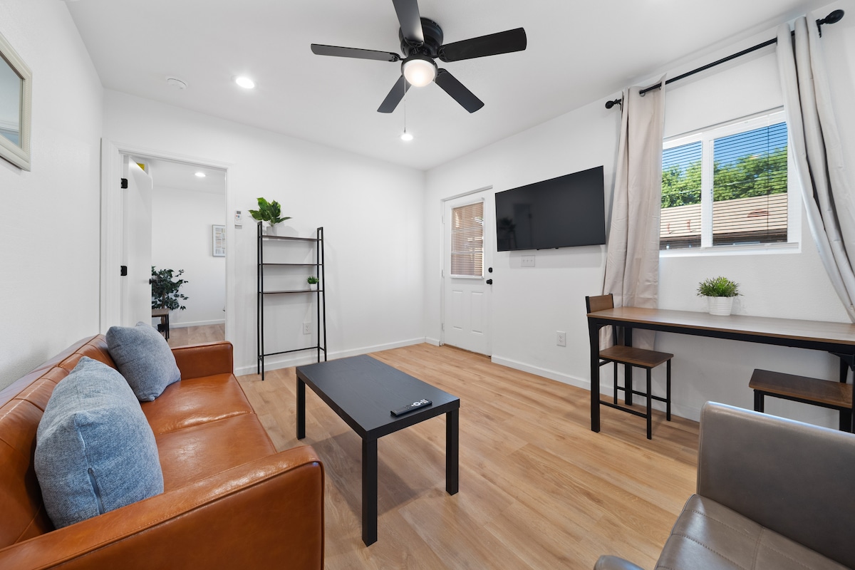 Dobro došli u „Pustinjsko utočište“ – elegantan studio uređen u pustinjskom stilu u srcu istorijskog dijela centra Jume. Nekoliko koraka od rijeke Kolorado, najbolje ocijenjenih restorana, barova i atrakcija do kojih možete da prošetate. Uživajte u bračnom krevetu, kauču na razvlačenje, potpuno opremljenoj kuhinji, rezervisanom parkingu i privatnom unutrašnjem dvorištu. Dva bicikla su uključena u cijenu. Okruženi živopisnim lokalnim muralima i kulturom – smještaj je moderan, besprijekorno čist i ima sve što vam je potrebno za nezaboravan boravak.