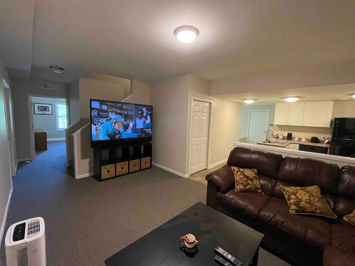 Novi studio apartman sa zasebnim ulazom. Potpuno opremljena kuhinja, novi bračni krevet, sav novi namještaj, uključujući radni sto, Wi-Fi, mnogo prostora za odlaganje, novi frižider, šporet, mikrotalasnu pećnicu, TV od42inča i mašinu za sudove. Jedinica uključuje sopstvenu mašinu za pranje i sušenje veša i ima predivan pogled na jezero ispred. Nalazi se u blizini bioskopa, kuglanja, restorana, tržnih centara, prodavnica namirnica, velikog državnog rekreativnog parka, skijanja i pogodnog za aerodrome. Unutrašnja jedinica kupatila sa 2 naslonjača
