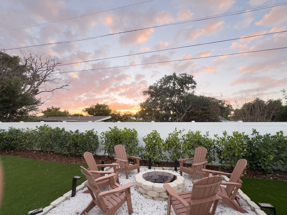 ČISTO - SIMPATIČNO moderno sa novim bazenom i novim klima-uređajem u udobnom mirnom komšiluku 1 blok (2 min. hoda) do plaže i pješačke udaljenosti do restorana, barova i prodavnica. Vodene aktivnosti i pesak su vam nadohvat ruke, pa dođite i uživajte u onome što nudi mali grad Indian Rocks Beach. Potpuno opremljena kuća sa 3 spavaće sobe i 2 kupatila sa svom posteljinom, peškirima, posuđem i priborom. Dupli tuš sa bračnim krevetom (širine 150-179 Nameštaj za unutrašnje dvorište/plinski roštilj. Smart TV i Wi-Fi. BeachWagon/Stolice/suncobran/peškiri/hladnjak. (BTR#2185)