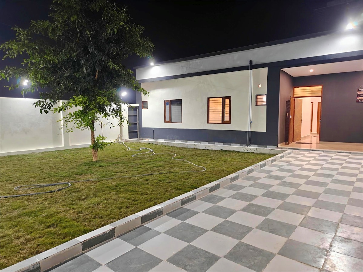 About This Property:- ✨ Master Bedroom – Featuring a Super King-size bed with an ultra-luxury Sleepwell mattress (worth ₹1.3L) for unmatched comfort, a 3-seater plush sofa, split AC, smart ceiling fan, 65-inch Android QLED TV with JBL soundbar, attached washroom, and thoughtfully designed lighting that creates a cozy, welcoming vibe. 🌿 Spacious Garden – Enjoy a 330 sq. ft. private garden with a stylish seating area, perfect for moonlit nights with fancy warm wall lights for a serene ambiance.