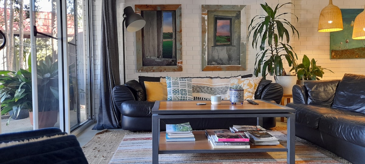 „Olistalo utočište“ je spektakularan, drveni i potencijalni domaćin u Art Deko/Nouveau/Umetnički zanati inspirisan privatnim bungalovom. Okruženi zanimljivim baštama i privatnim prostorima, hirovitim pešačkim stazama i fantastičnim kreativnim elementima. Ručno izgrađeni i ukrašeni od strane domaćina koji su 20 godina prikupljali jedinstvene predmete za smeštaj u ovom jedinstvenom smeštaju. Dođite, uživajte u dugom kupanju u našem kamenom kupatilu! NAPOMENA: Leafy Retreat je veoma privatan i nalazi se na zadnjoj strani kuće domaćina u veoma mirnoj ulici u predgrađu.