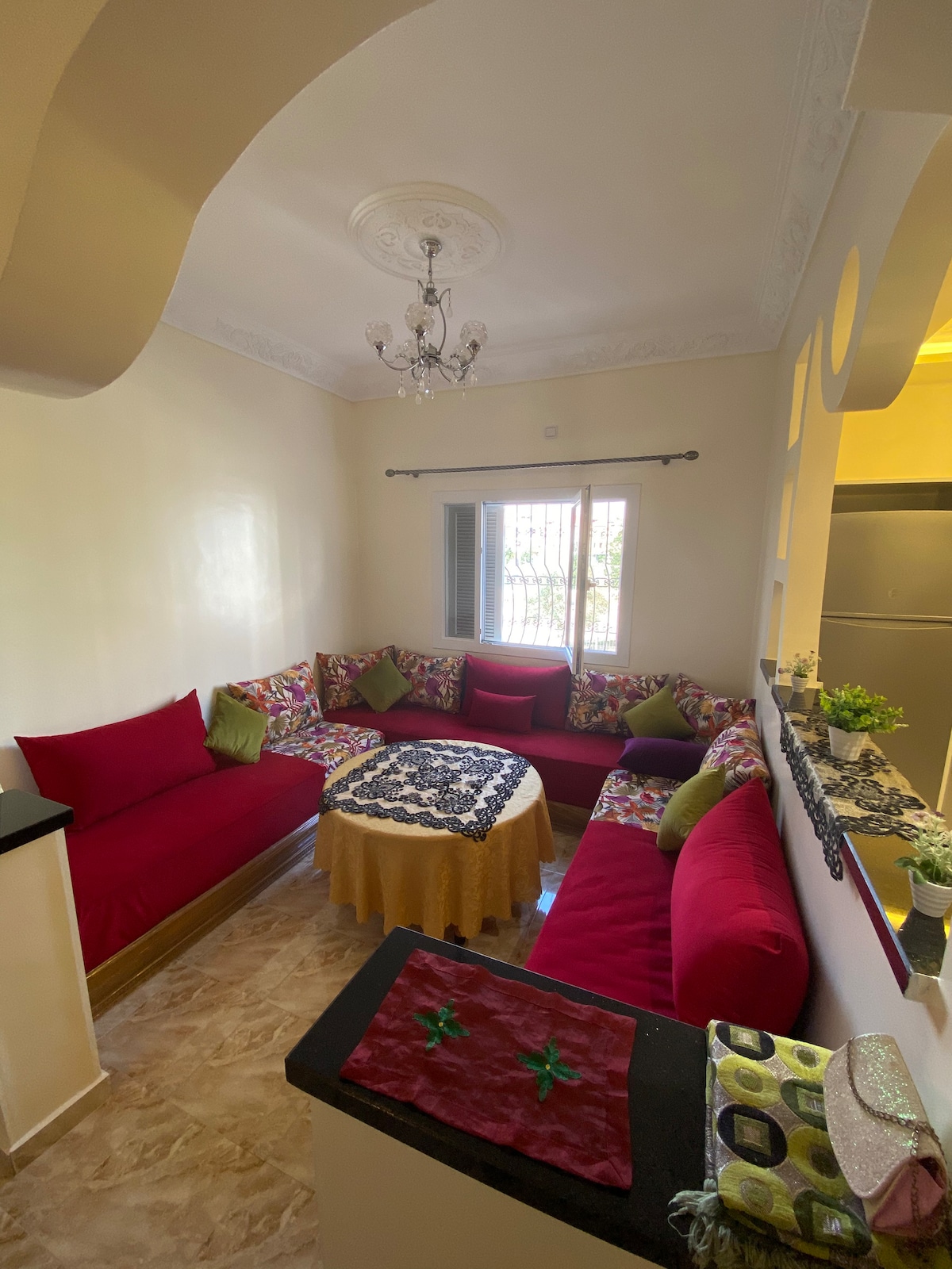 visoko standardni stan u najpopularnijem mestu u Agadiru koje ćete naći u blizini ,kafići restorani ,plaža ,spa i hamam. apartman je idealan za 4 osobe, ali može da ugosti do 6 osoba Apartman je opremljen zakrivljenim led televizorom, satelitski kanali (tf1 M6 Canal Beinsport), Wi-Fi, 1 veliki bazen u rezidenciji , besplatan parking, danonoćni čuvari