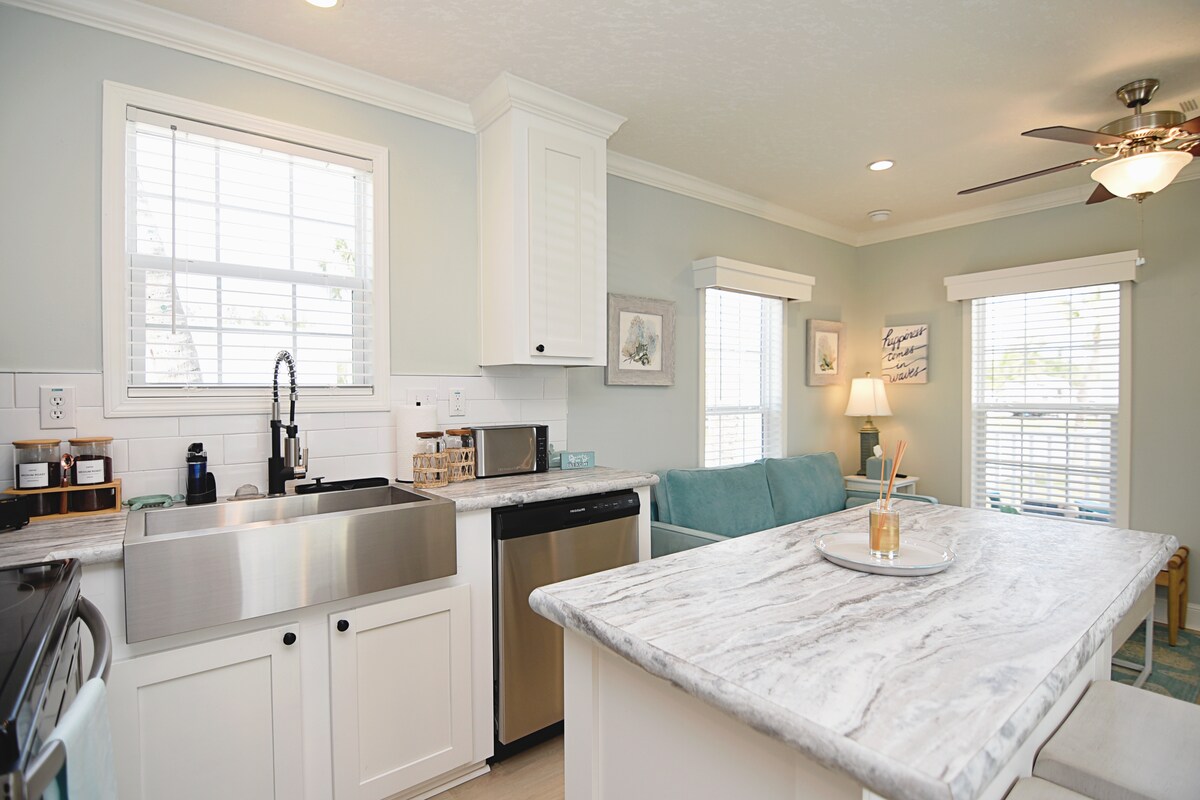 Seaside Blue je moderna kućica na obali koja se nalazi u prelijepom odmaralištu. Dom otvorenog koncepta ima potpuno opremljenu kuhinju, veliku prednju verandu i prostranu dnevnu sobu za opuštanje ili zabavu nakon dana provedenog na bazenu ili obližnjim plažama. Susjedstvo Osprey Bay, bogato sadržajima za aktivne odrasle, nudi sadržaje kao što su blistavi bazen i paluba, prostrana klupska kuća, roštilji, televizori na otvorenom, zelene površine, pikl-bol, aparati za espreso, fitnes centar i simulator golfa.