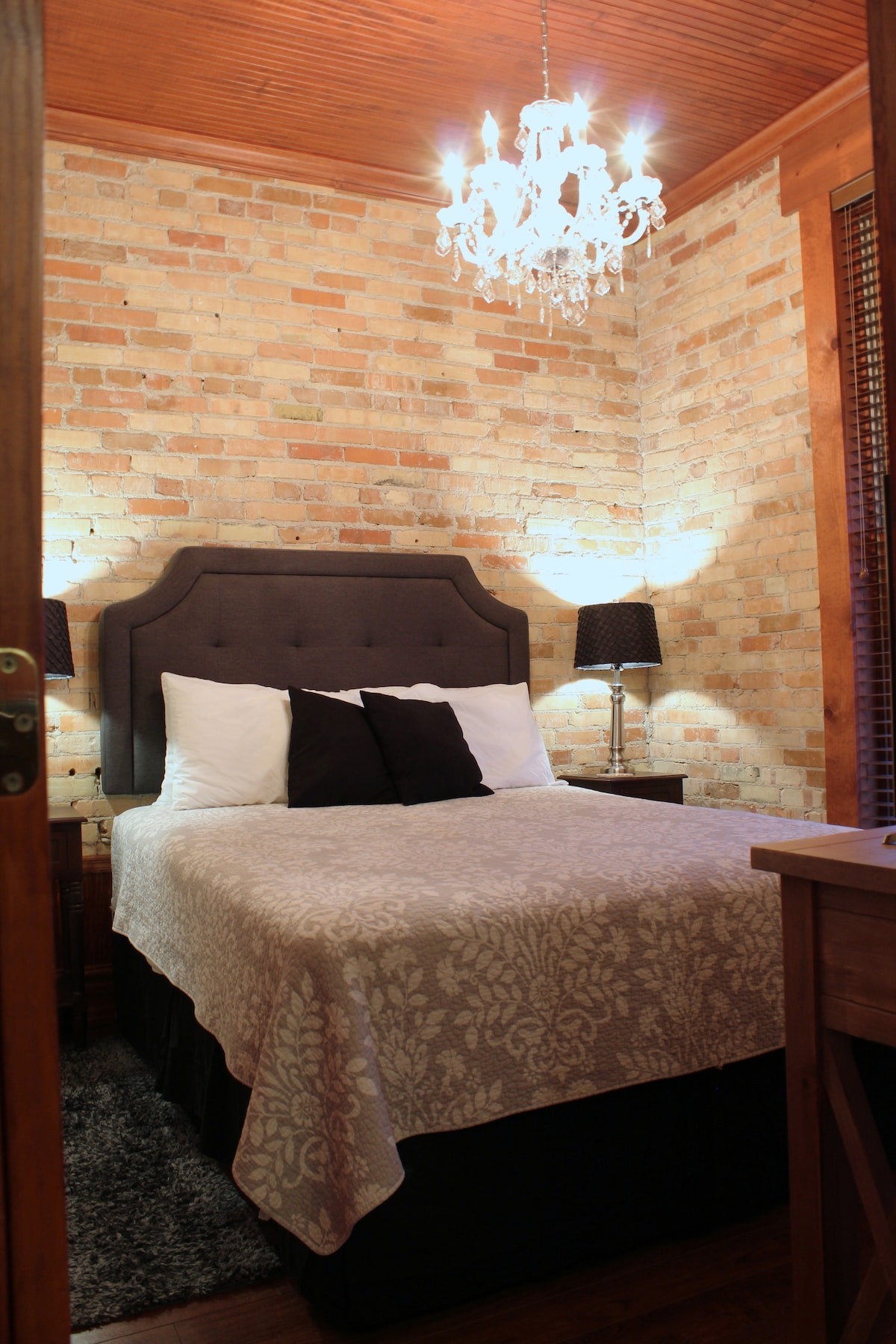 Experience the peaceful charm of Lake Odessa from the heart of downtown. The Apartment on 4th offers a quiet retreat just steps from quaint shops, local restaurants, the village park, and the lakefront beach. Inside, you’ll find a warm, inviting, and peaceful home base with comfort and character. Exposed brick walls, hardwood floors, and an antique oak fireplace create a cozy atmosphere. Wake up in a luxurious queen bed, brew coffee in your full-sized kitchen, and enjoy it on the rooftop patio.