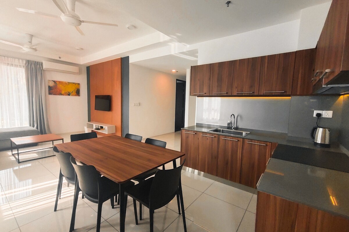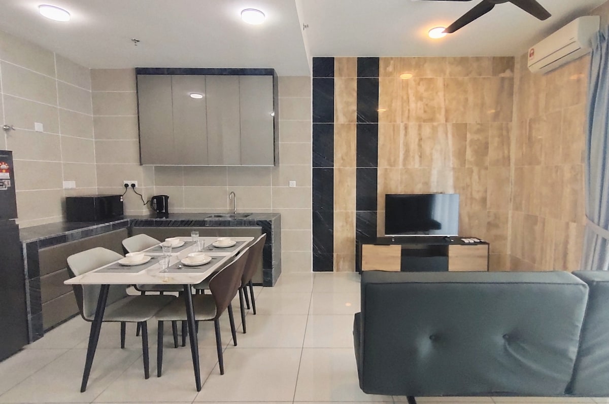 Jedinica može da primi 4-7 gostiju . Besplatan brzi Wi-Fi . TV-Netflix, Disney Plus, MyTV. . 1 bračni krevet (širine 150-179 cm), 2 kreveta za jednu osobu, 3 futona i 1 kauč . Dnevni boravak i glavna spavaća soba (klimatizovani) . Spavaća soba 2i3 (plafonski ventilator) . Tuš-kabina sa toplim bojlerom . Kuhinjska peć,frižider,mikrotalasna pećnica, električno kuvalo za vodu i šporet za pirinač . Obezbijeđena su 2 peškira (za dodatno,pls request-add rm5/pcs) . U blizini mnogih atrakcija, restorana i vodopada . Samo 5 minuta vožnje do Mydin Meru i autobuskog kolodvora Aman Jaya, Ipoh