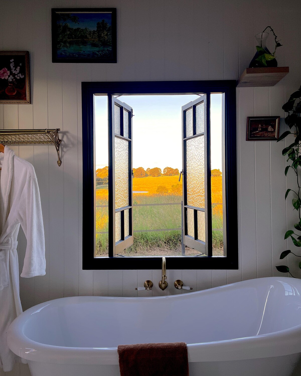 The unforgettable escape of The Chalet @ Darclo Farm rests upon the open grassy hillside, overlooks the meandering valleys towards the picturesque Mt Flinders, in the Scenic Rim. The Chalet is 100% off grid and is home to a happy herd of roaming cattle, koalas, kangaroos & other wildlife. Soak under the stars in the outdoor stone bath, unwind with a book on the deck while overlooking the paddocks, stroll along the tracks or snooze in the king size bed. Experience that 'faraway feeling'.