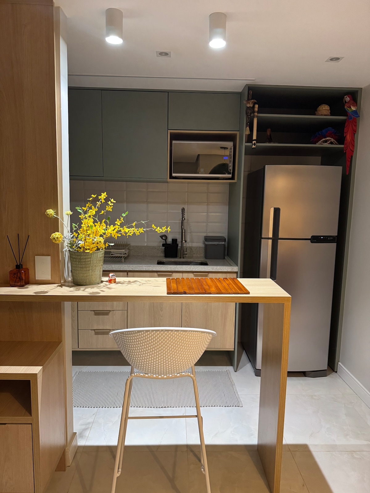 Stan u hotelu Tropical Executive koji je prelijepo dizajniran sa prelijepim pogledom na rijeku. Klimatizovana soba, jedan bračni krevet Ortobom, 1000 žica, TV od45inča, Wi-Fi, trpezarijski sto sa 2 sjedišta i kauč. Dobro opremljena kuhinja sa 2 ploče za kuvanje, čistačem, prečišćivačem vode, aparatom za kafu Dulce Gusto + kapsulama, tiganjima, blenderom, frižiderom, posuđem, kuhinjskim posuđem i mikrotalasnom pećnicom.